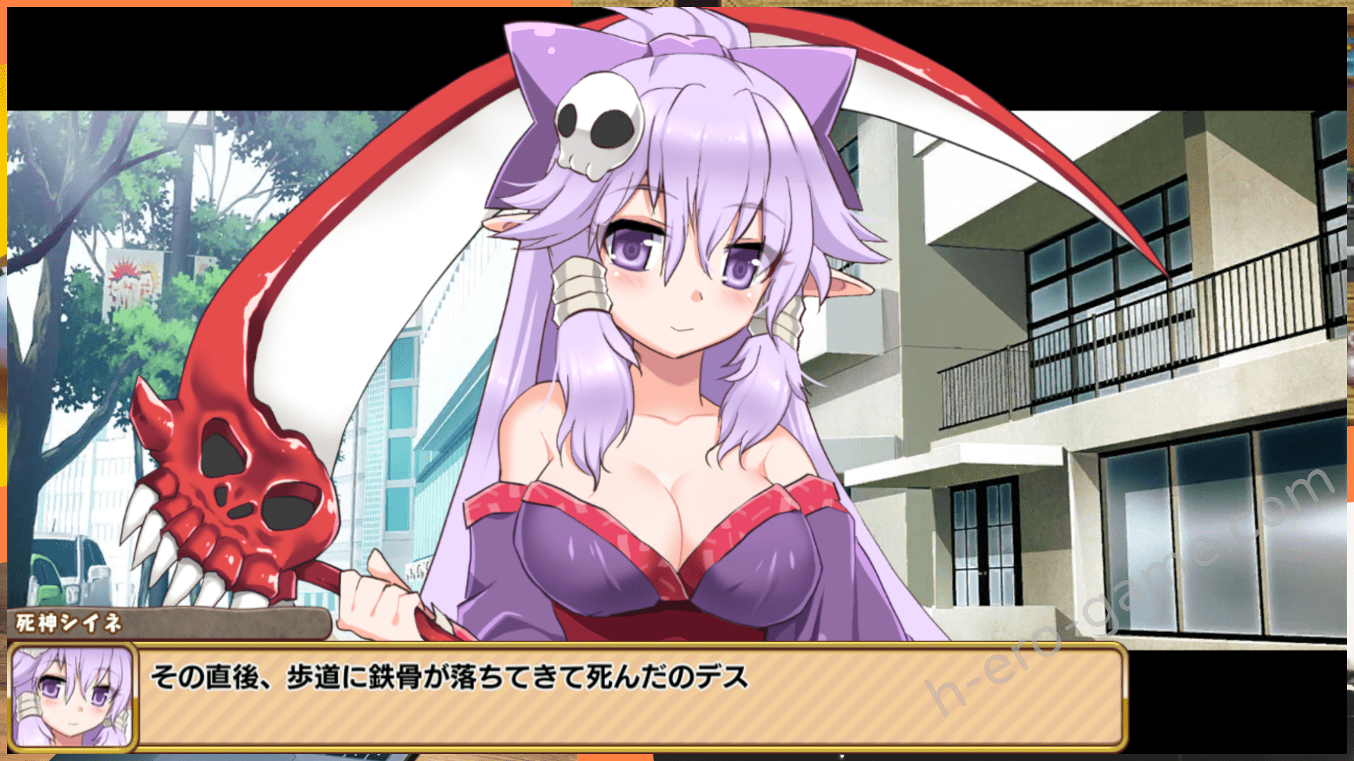 故事基本上是在經營商店,但卻會遇到許多死亡事件,需要同時利用死神之力進行死亡回歸來繼續經營商店,並在最後完成拯救世界(建立後宮?)的目標。
