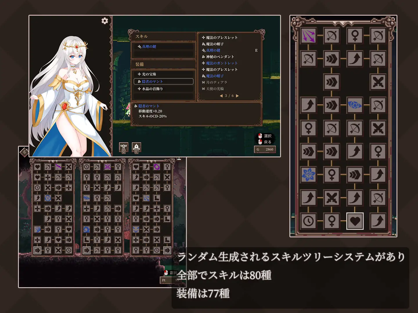 系統簡單好上手,而隨機生成的技能樹和多樣化的裝備系統能明顯感受到角色成長,把裝備裝滿之後難度就直線下降,困難的只有王女自己開荒的前兩關而已。
