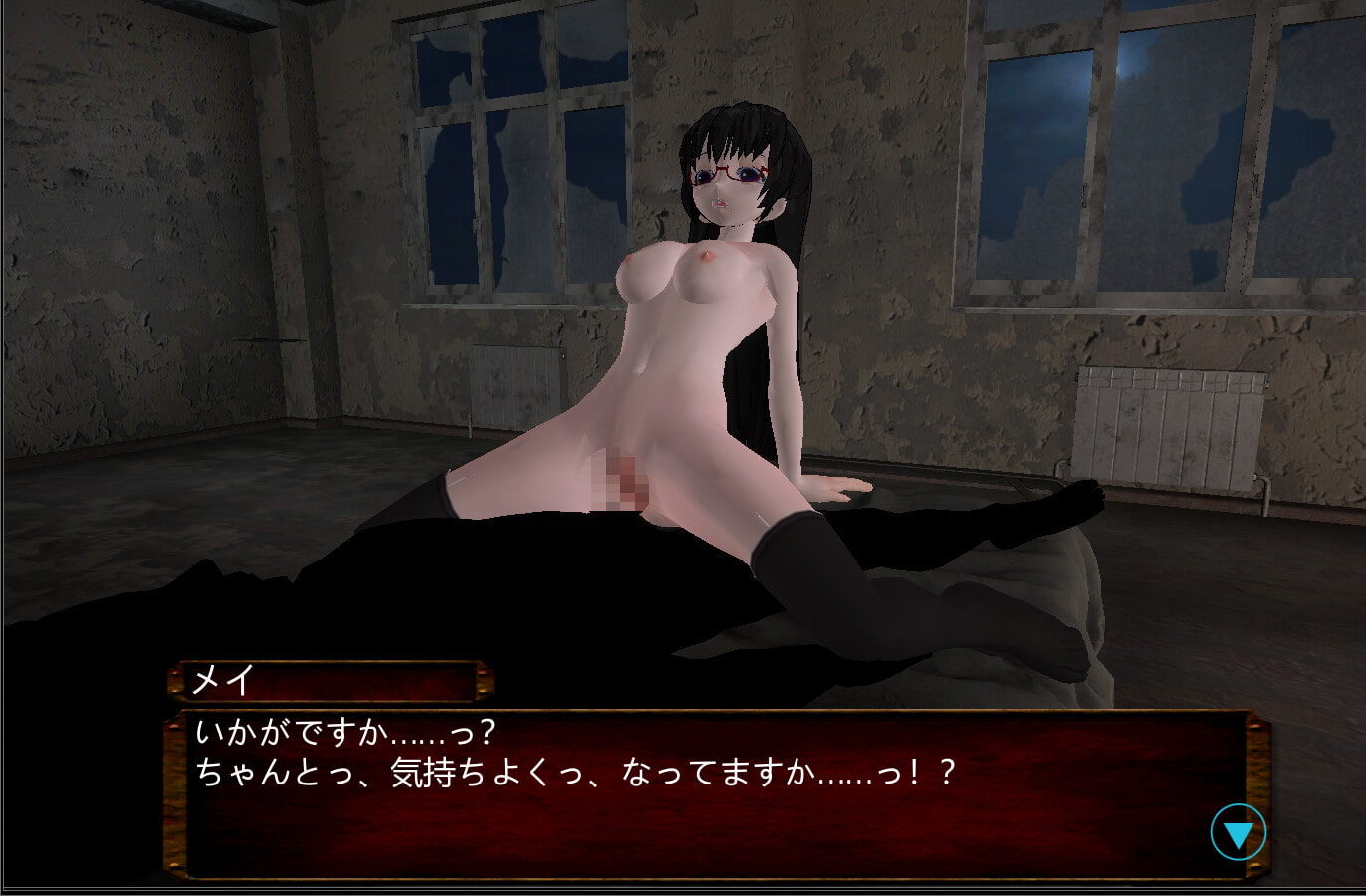 工口方面是罐頭音效跟用3Dカスタム少女做成的3D動態場景,雖然是ADV介面可是其實在H時可以用滾輪跟右鍵控制鏡頭。每次打完殭屍之後有選項可以選今晚要跟誰H,場景情境依照一開始的選擇分成兩種路線,鬼畜路線是凌辱到快樂墮,善人路線是純愛系的和姦,兩個路線中都有暗示說殭屍病毒讓女孩子們性慾高漲強制發情。