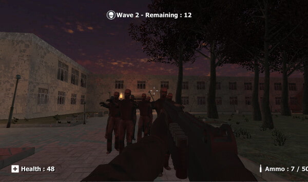FPS的部份是很單純的類型,WASD操作方向,Shift跑步,空格是跳,左鍵開槍,右鍵瞄準,R是填彈。操作上很普通,沒有什麼太特別的,不過爆頭時會有個慢鏡頭的子彈時間稍微有點爽。設定上是男主的武裝所剩無幾,所以每天都要去槍砲店補給,因此在每過一個關卡就要換一種武器。不能換以前拿過的武器覺得有點可惜,而且手榴彈的關卡要用五顆手榴彈炸死三波殭屍真的很難。