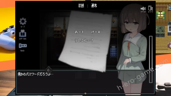 密碼門的密碼是看該平假名是在「該行的哪一段」。如範例中的あ是在あ行あ段(第一段),所以是 1。け是か行え段(第四段),所以是 4。因此密碼是拿著五十音表就能看出來,懶得看的話「3255」。