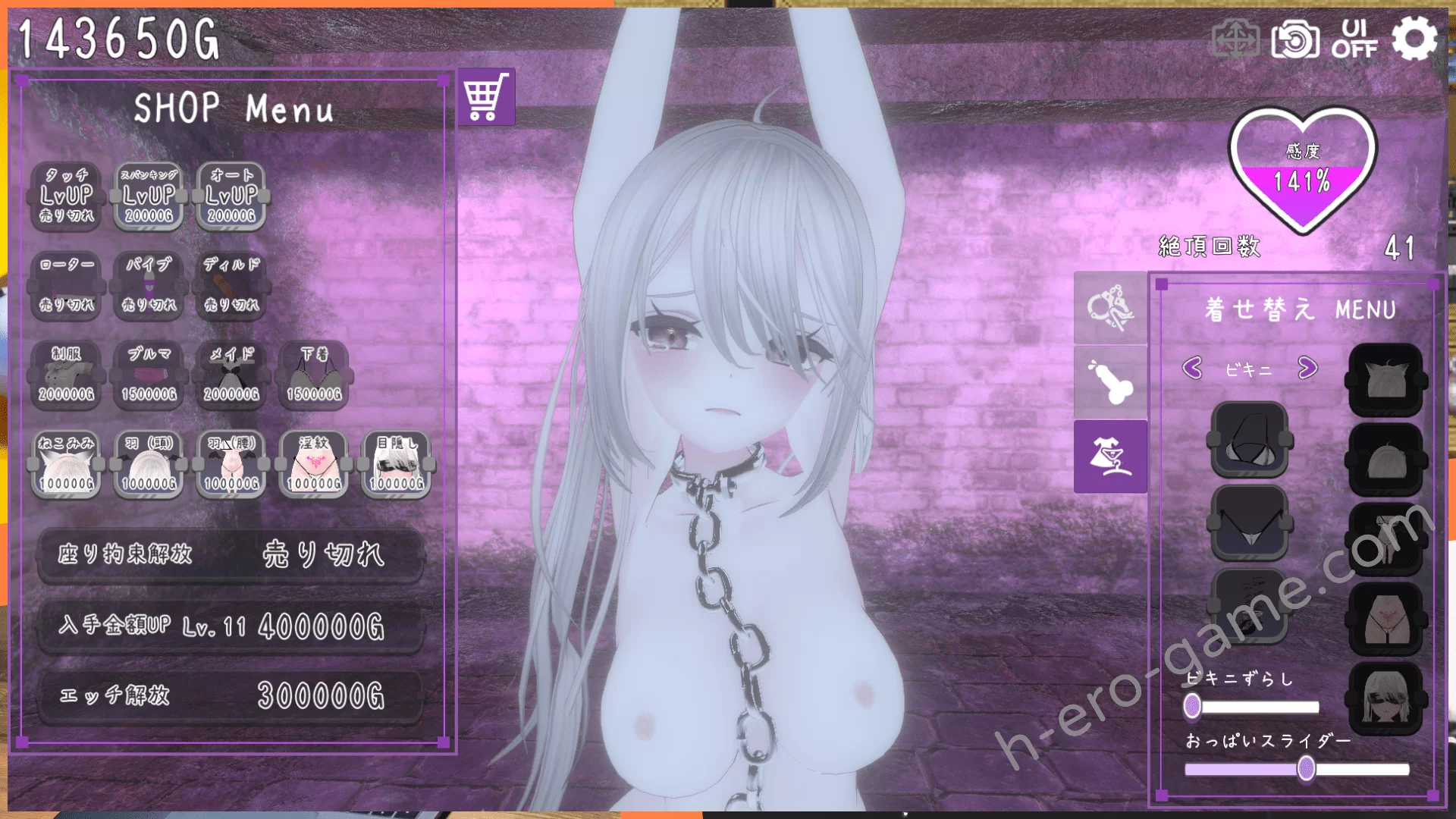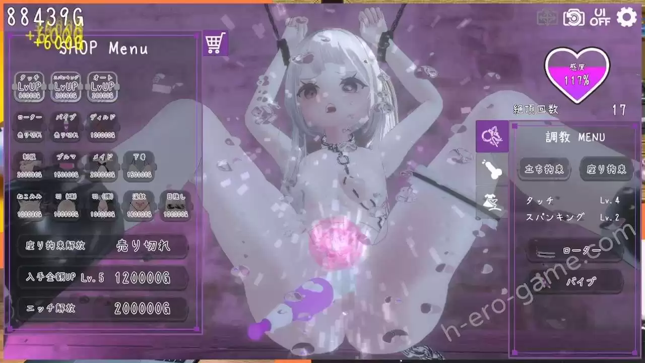 基本就是用金錢來強化觸碰、拍打、自動模式的效率,以及解鎖各種道具、體位、衣裝、配件。
