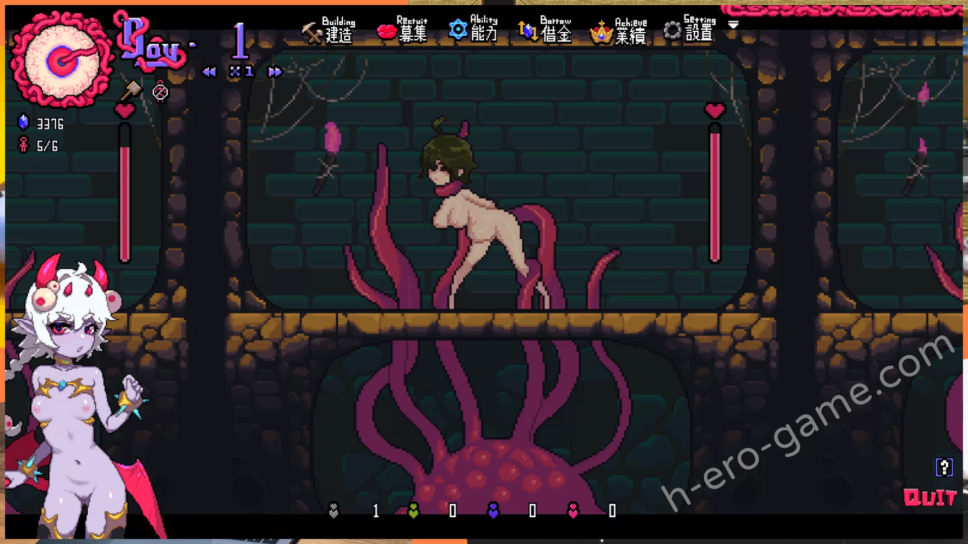 工口方面主要是各個房間中的點陣圖動畫,冒險者有隨機的體型、髮型、瞳色等等也會反應在動畫中,雖然說不是很明顯。