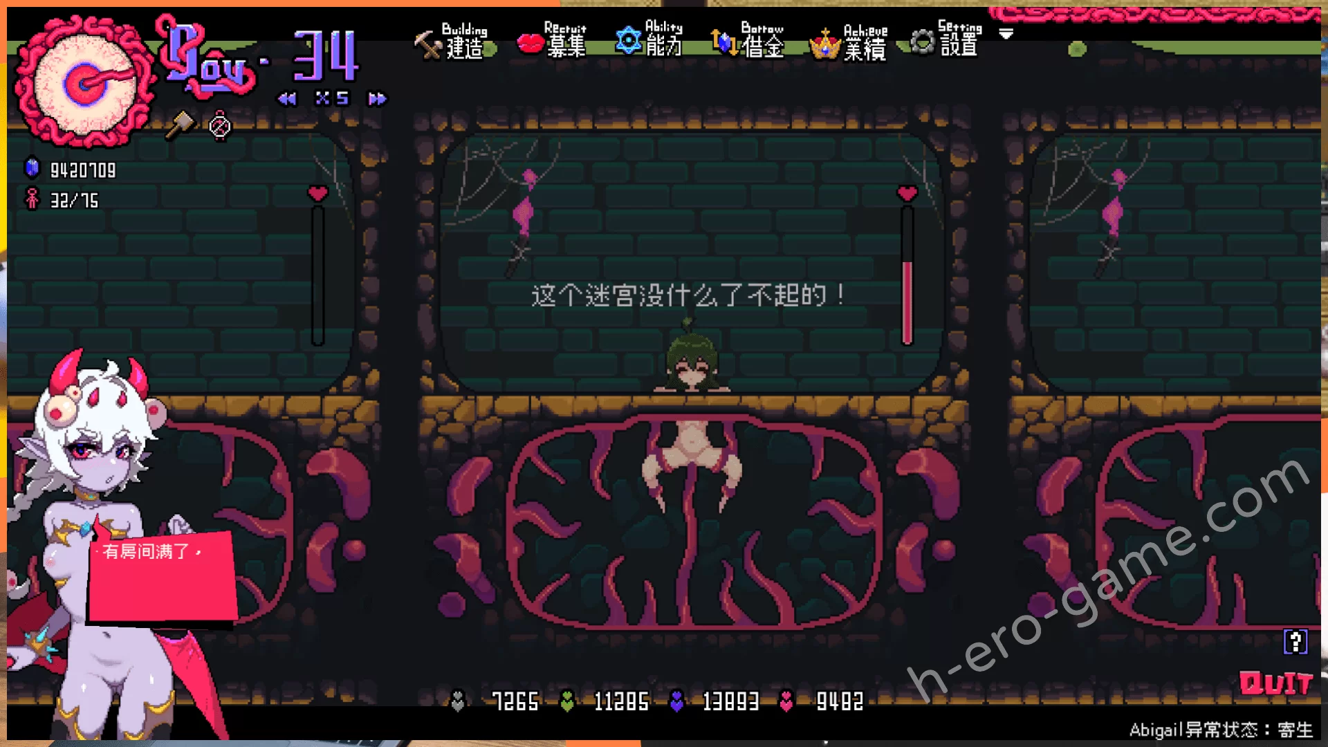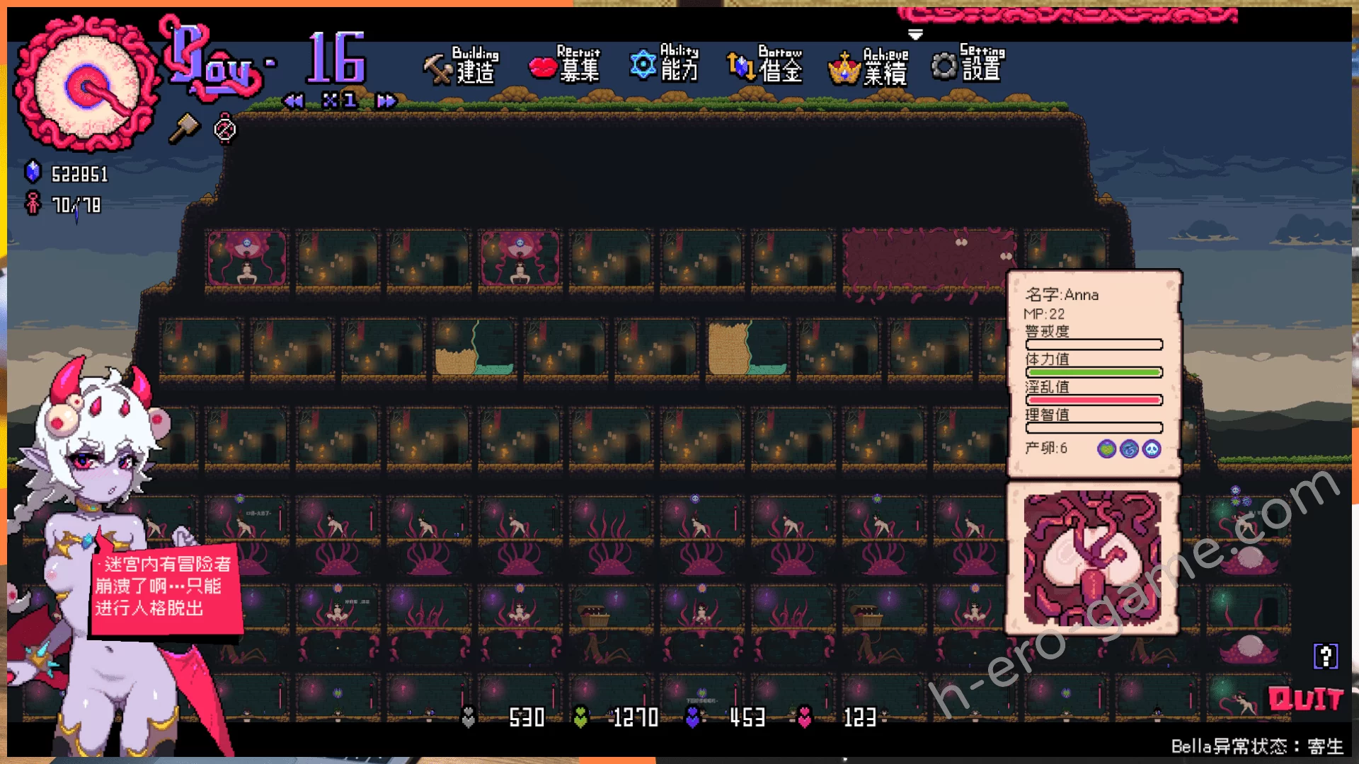 流程是建造休息房間增加冒險者數量上限,募集冒險者進入迷宮之後用滑鼠把她們丟進陷阱房間。