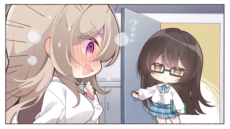 被撞倒的女生則看著他逃跑的背影,疑惑地歪了歪頭。