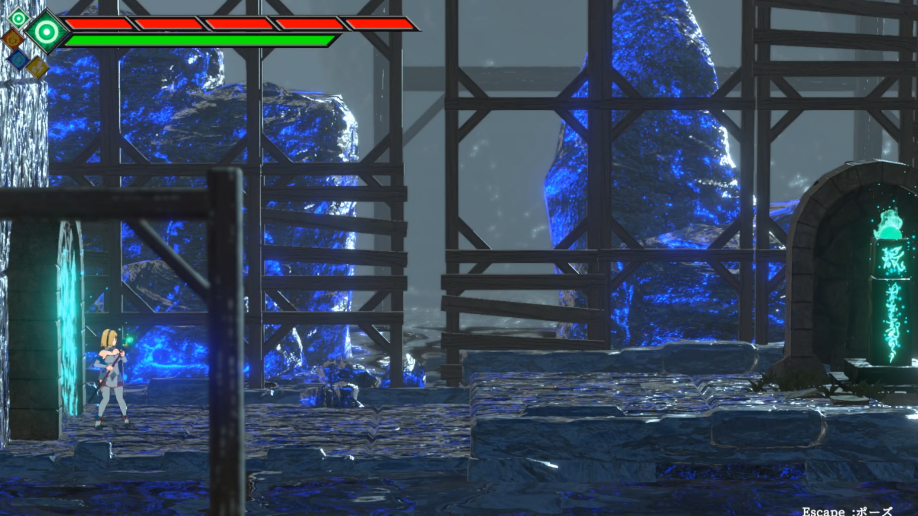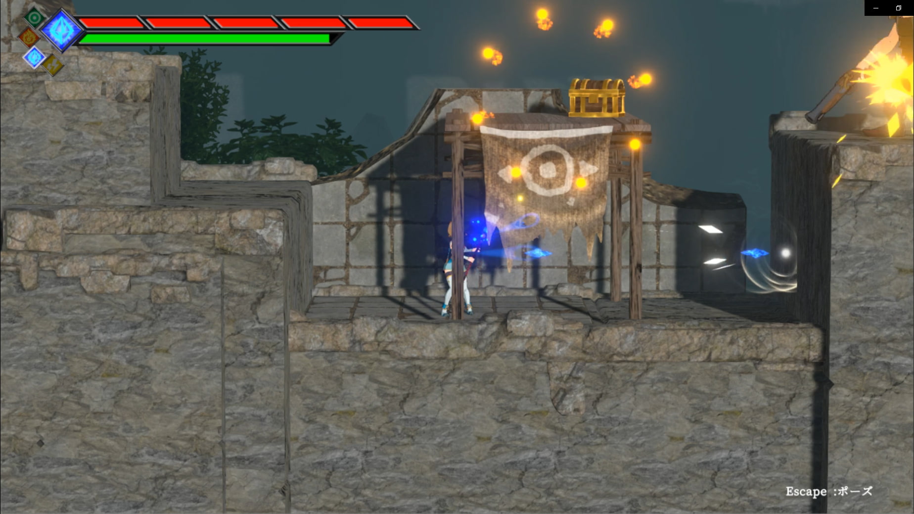 玩起來是3D的橫向卷軸動作遊戲,操作就是簡單的移動、蹲下、跳躍、射擊,打完一個關卡的頭目後能回收寶珠,並且增加會有新的魔法可以使用。有點類似洛○人的感覺,不過可以選的關卡是逐步開放,像是序章打完之後可以選冰、火兩個洞窟這樣。然後冰魔法集氣射擊可以做一個可以踩的平台,這也很○克人。