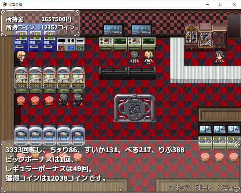最後,錢是還不完的喔。而且援交娘偶爾還會來敲竹槓,要存錢的話最好每周都玩老虎機,把現金換成遊戲中心的代幣。反正除了包養之外的東西都能用代幣買到,而且真的要包養援交娘也可以把代幣換回現金。