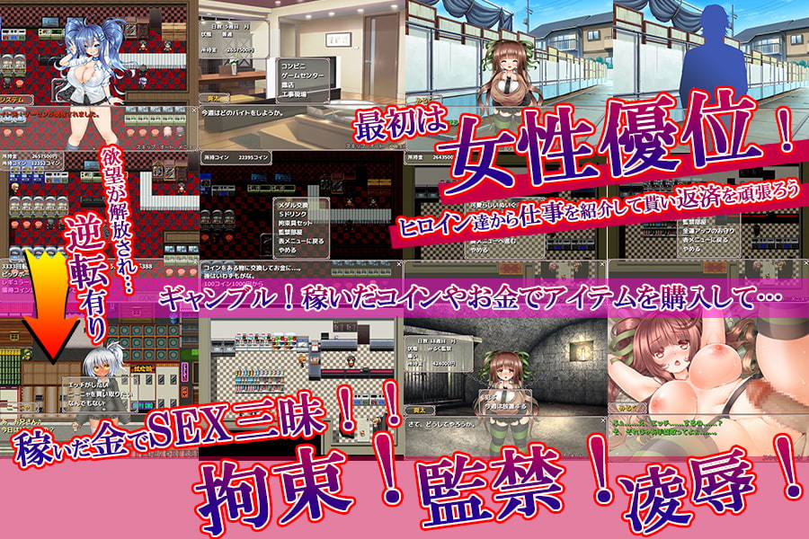 遊戲的主線劇情是要靠錢來解鎖,包養援交娘要一百萬,或是買好拘束道具跟監禁室要一百一十萬。打工賺的錢雖然說會因為打工的次數而慢慢增加,不過真的是增加得很慢。要加快流程的話就是快把工地的打工開出來,便利商店裡賣的金運護身符也是是一開始就馬上就買下來,另外神社裡面的祈禱也有機會增加打工賺的錢。也可以用掉一天的休假日在遊戲中心玩老虎機,老虎機是丟的次數夠多的話一定會賺錢的佛心設計。