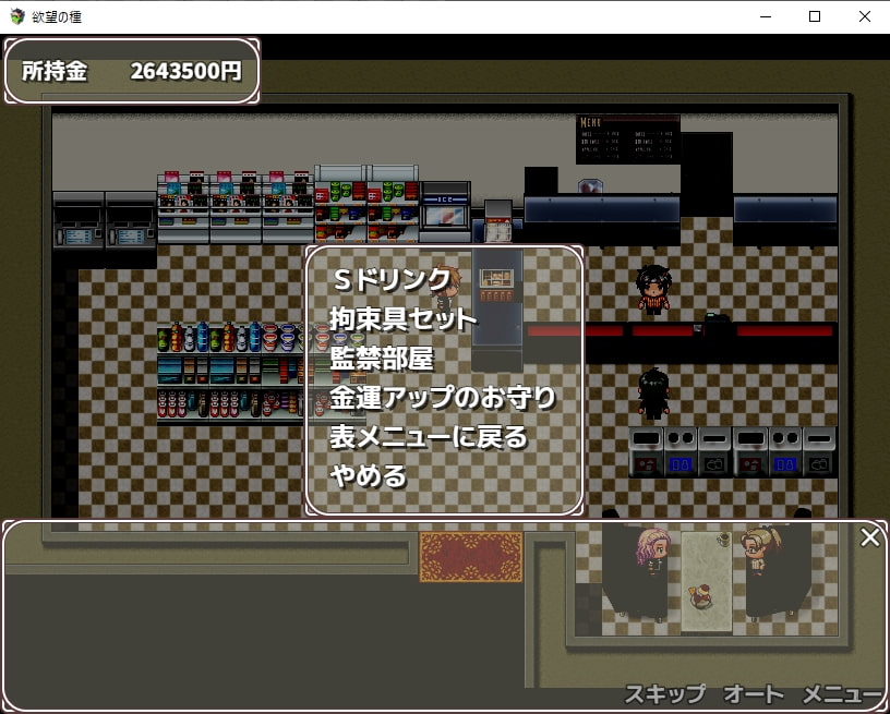 記得是買好拘束道具跟監禁室要觸發數次喝過S飲料的逆轉H,達成條件之後會問說要不要把女孩子監禁起來