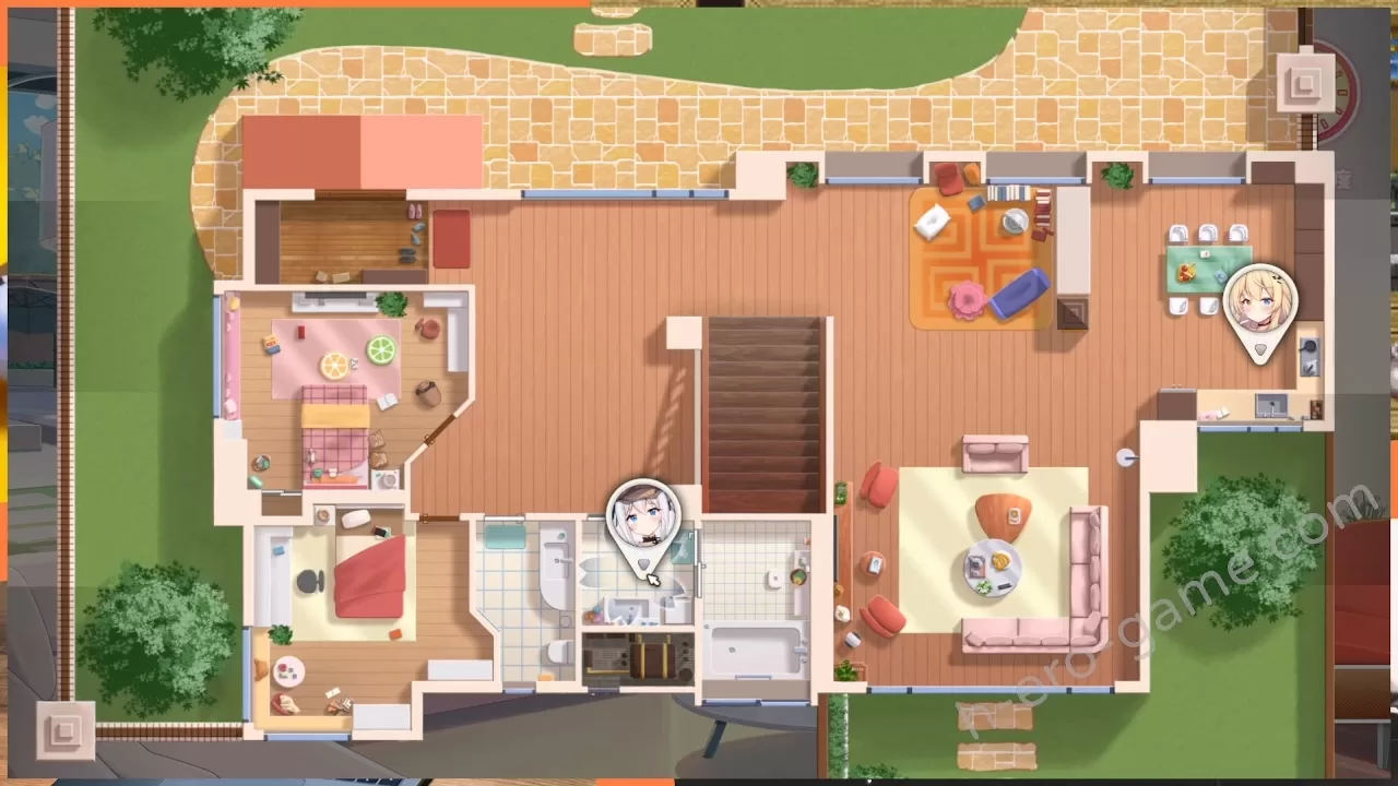 在自由時間中可以在家中的各個房間與妹妹們互動,通過「會話」、「禮物」、「互動」指令提升兩位妹妹的好感度。