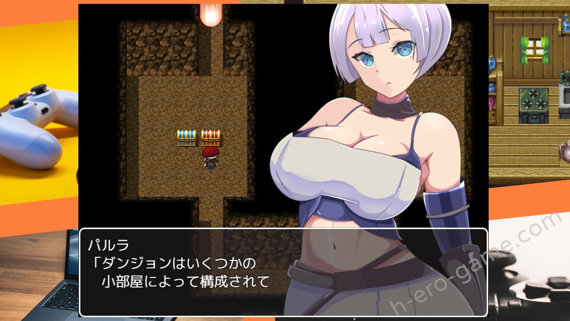 學弟說他用魔道具拍下了鎮上許多女孩子的影片,雖然有些是偷拍但大多都是有經過對方同意的,而他打算要在道具店中販賣這些新商品要男主多捧場。於是男主為了買到這些性愛攝影,開始積極的與公會的夥伴們一起攻略地城賺錢的RPG