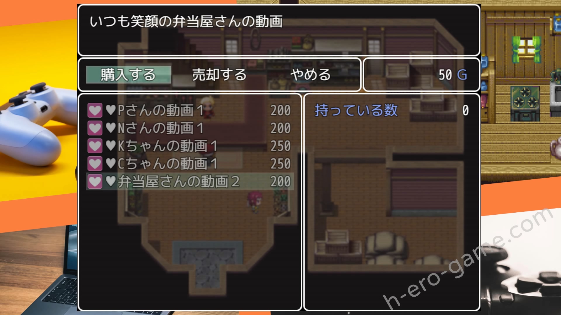 工口部分是靜態CG為主,雖然稍微有點粗製但是看得下去,習慣之後還蠻有特色的。工口場景方面非常有趣,主要是要男主買道具店中的性愛攝影來看,一開始學弟那裡只有標記了女孩子化名(除了賣便當的姊姊之外都是化名)的第一集的影片,把所有的第一集都買完之後學弟就會開始準備新的影片並且上架。