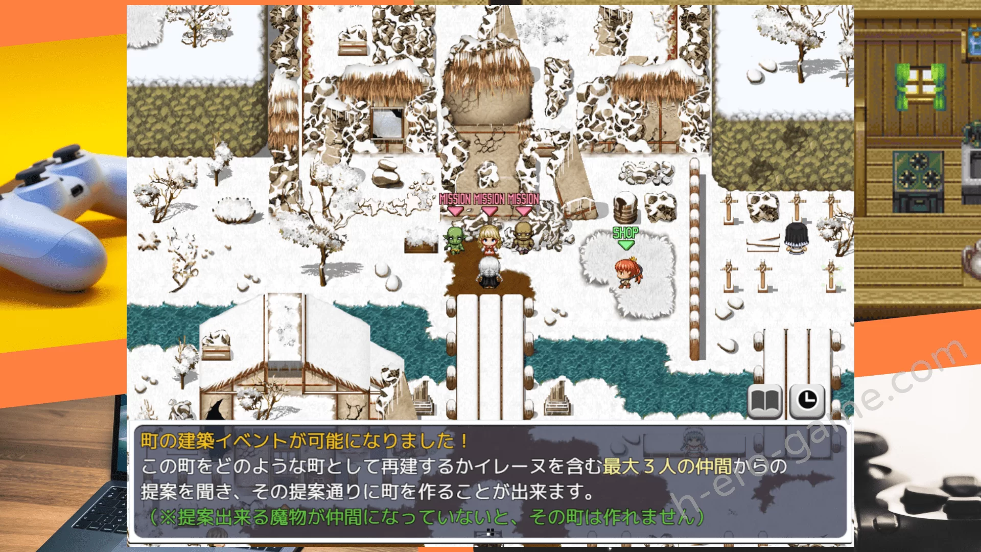這時隊伍中有獸人的話,獸人會建議將城鎮改造成要塞城市。而哥布林是夥伴的話,則會說出將城鎮變成「孕袋養成設施」的提案。以上的每種選擇都會改變城鎮的外觀、可獲得的道具、能觸發的特殊事件等等。