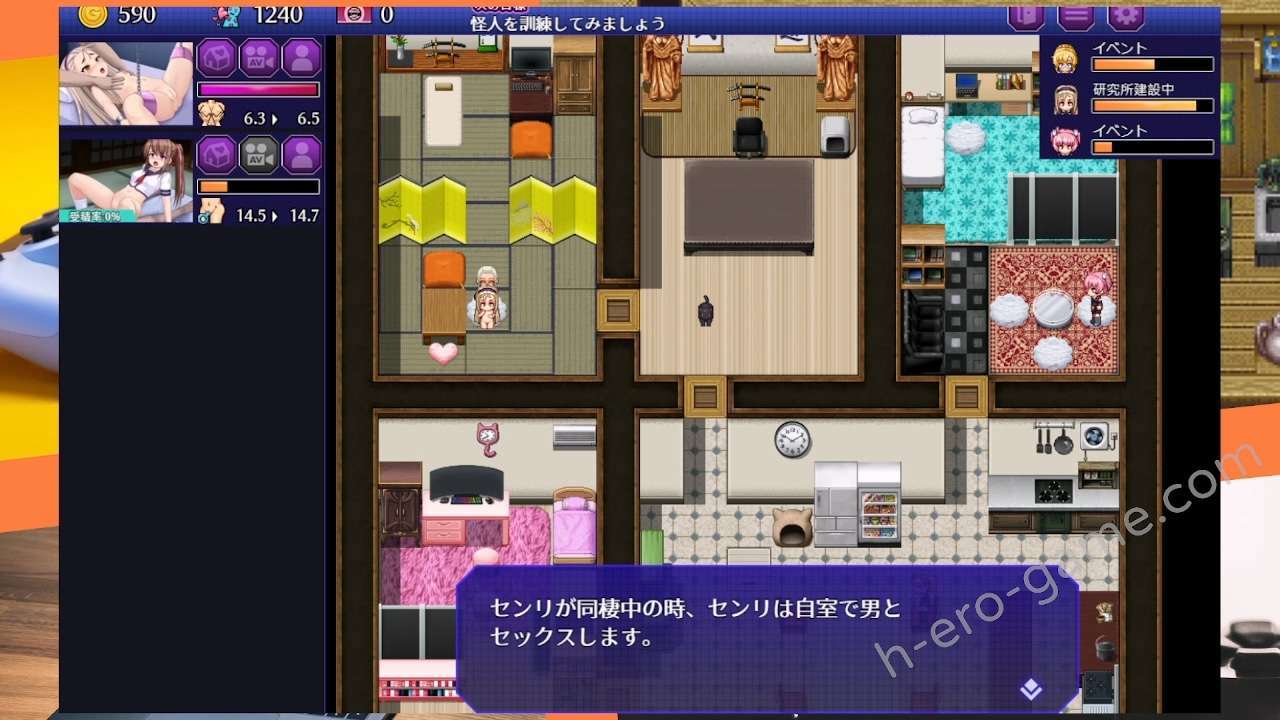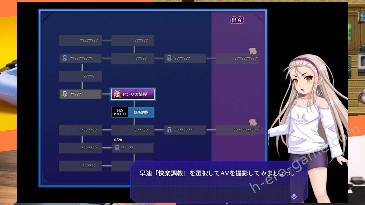 而本作最大的特色,就是以上所說的A片販賣、設施建築、受孕、訓練等動作都要消耗時間,經過現實時間後完成動作。