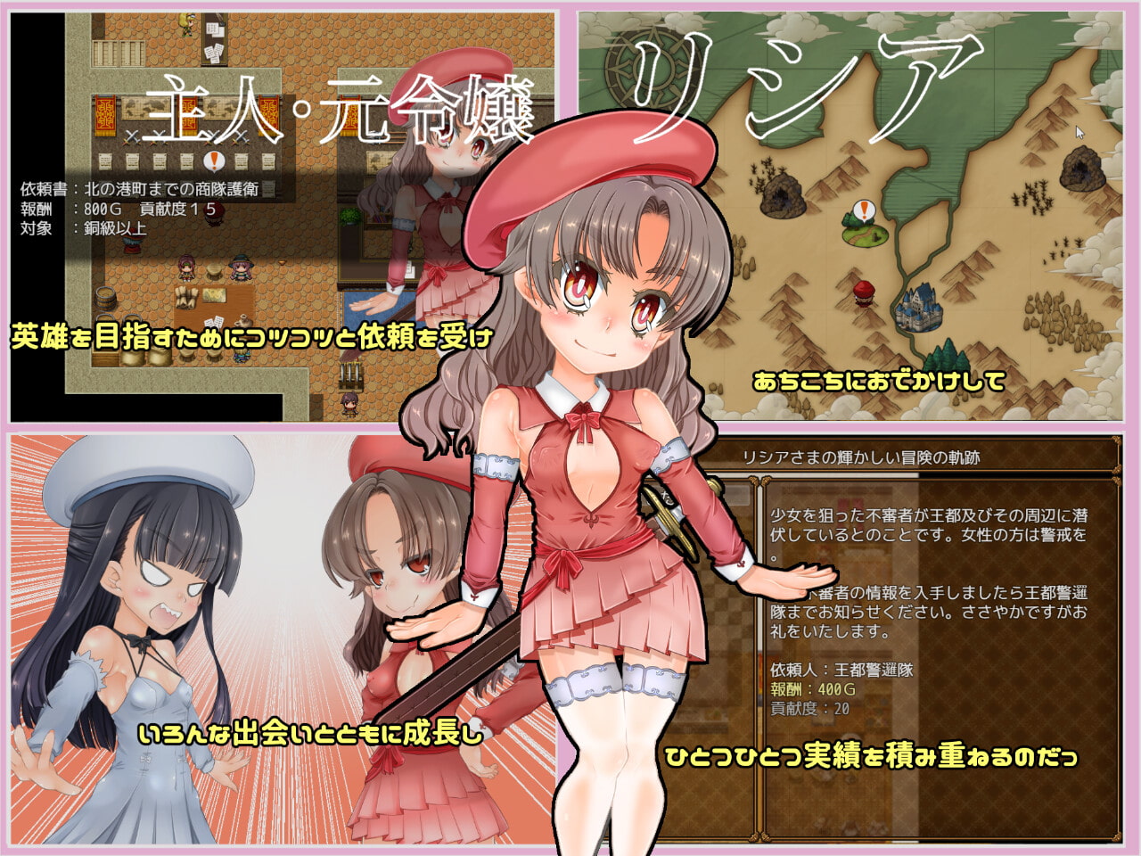 在一番商量之後,不管是返回領地報仇、尋找父親還是找國王哭訴都是死路,於是女主決定成為冒險者。在累積足夠的實力、人望與金錢之後再回到領地奪回爵位,但是在王都生活不是什麼簡單的事情,兩人剩下的錢也只夠付半個月的房租而已…這是女主與忠心的女僕為了奪回貴族的地位而努力工作的RPG