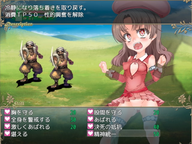 戰鬥中的拘束攻擊有點意思,被拘束之後要猜一下是會要防備胸部、下體還是被脫衣,猜對的話才能解除拘束。要是一直猜錯而被H的話就要進行抵抗,直到無法抵抗就會被中出,並且可能會懷孕。抵抗的方法有很多選擇,戰鬥工口的內容很豐富。不過高難度的模式下拘束攻擊不太好掙脫,而且對話文字不少,想快點打怪專心推劇情的話會覺得很麻煩。