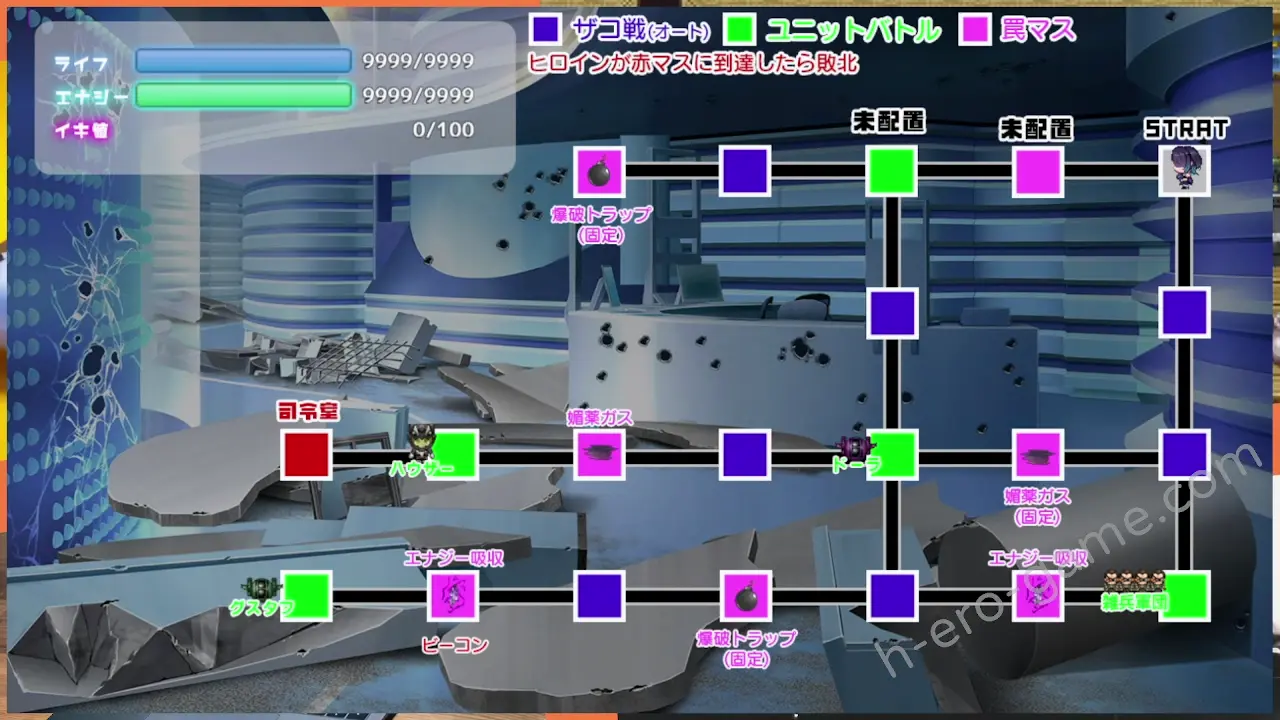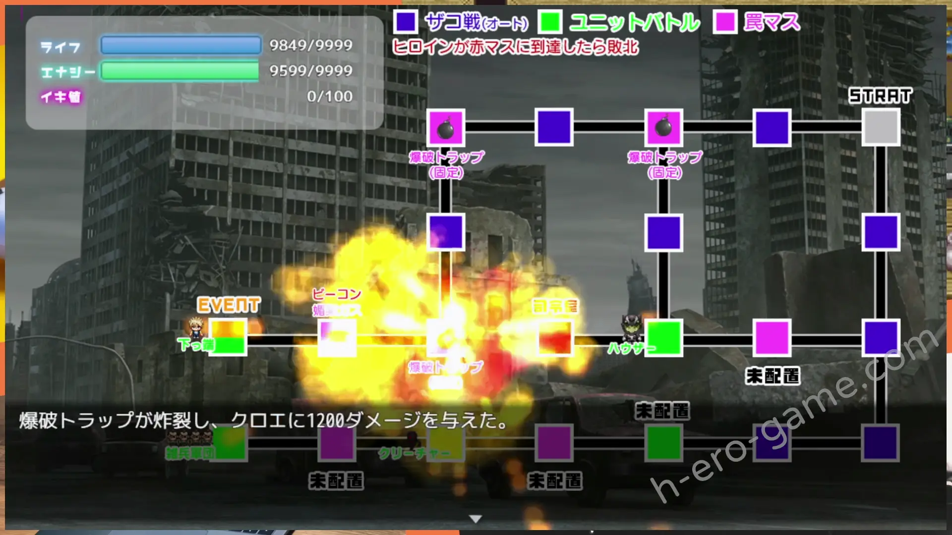 陷阱總共有四種,各自能讓戰姬破甲、施加媚藥、吸收戰姬的能量(エナジー,就MP)以及爆炸讓戰姬受傷。