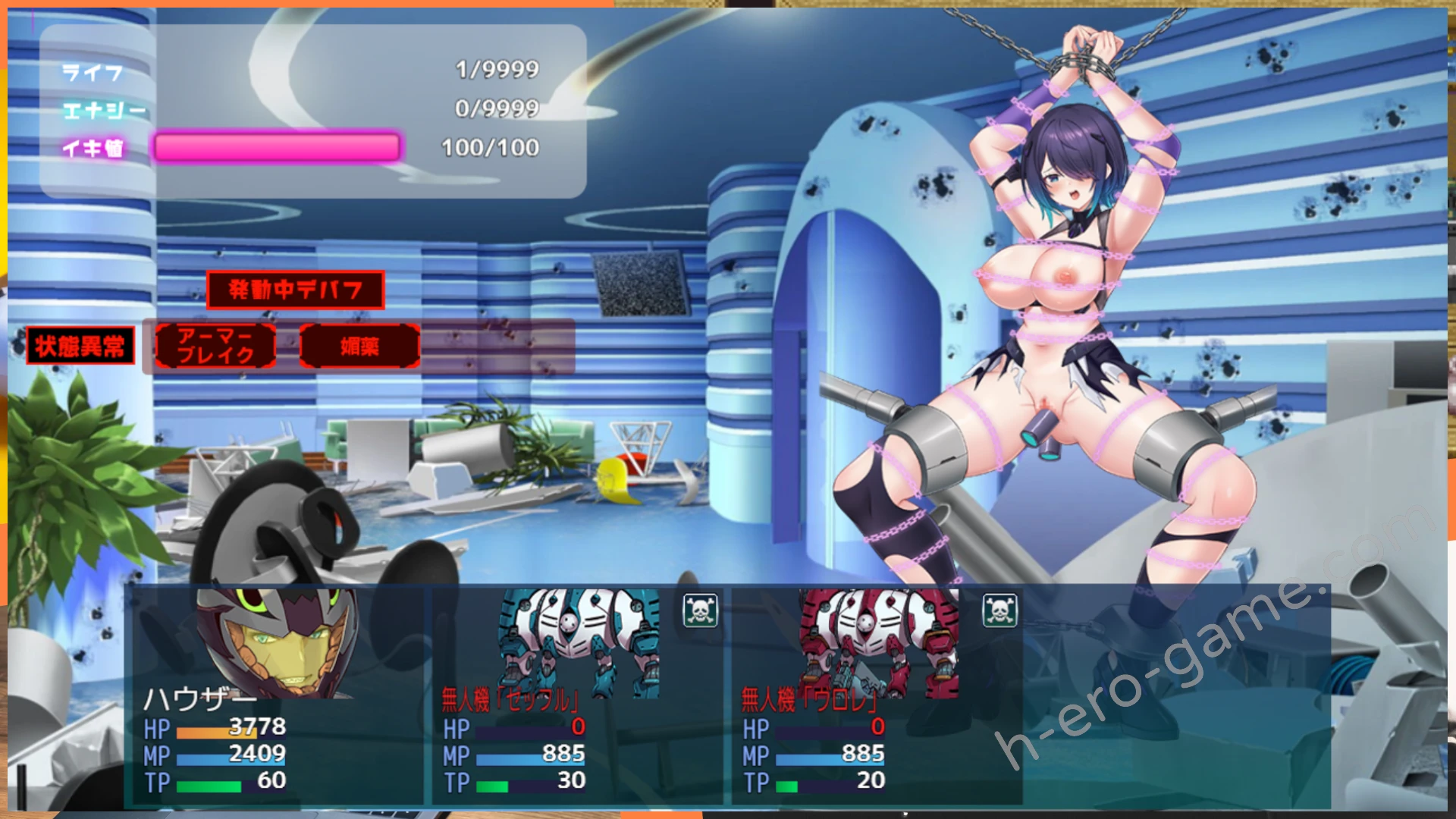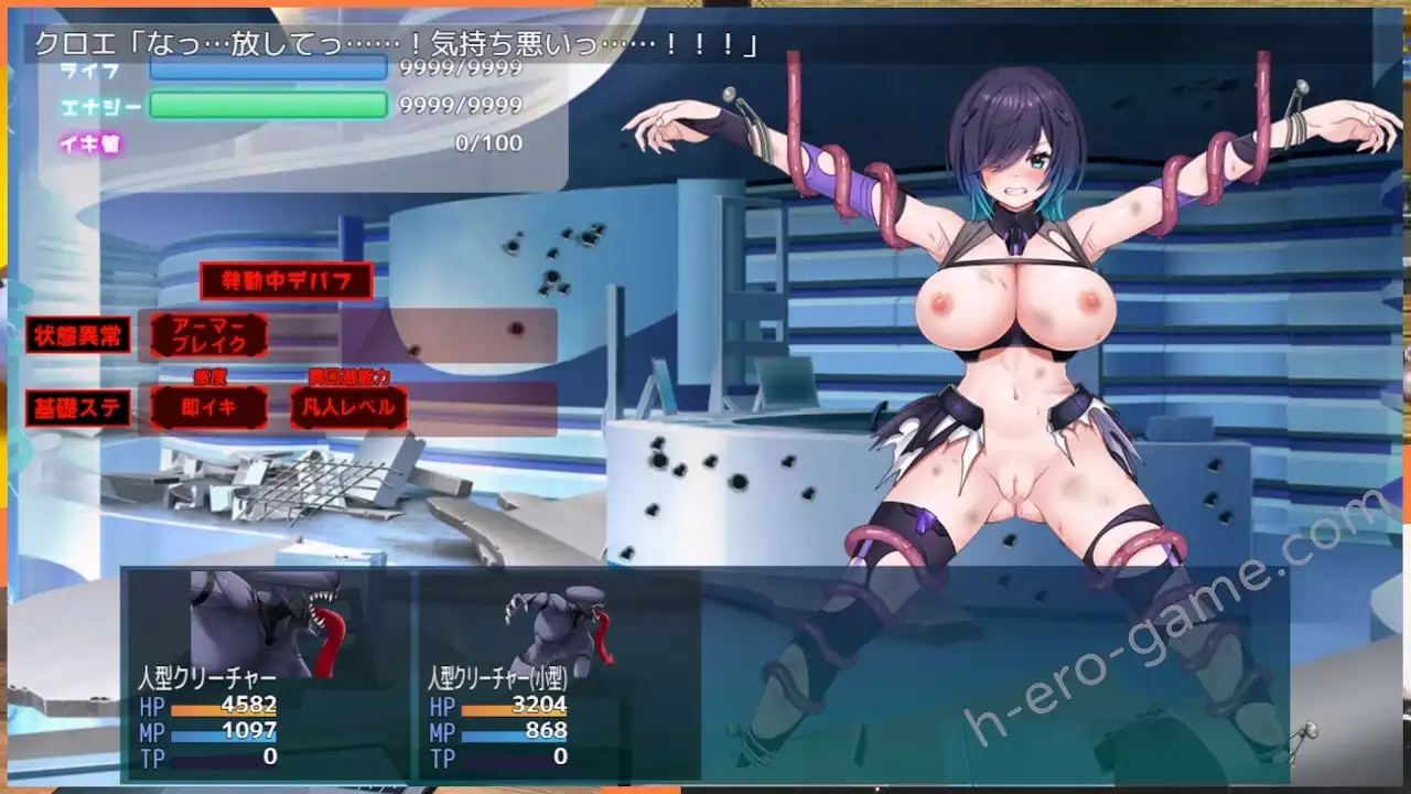 而發動戰鬥陷阱,要做一次QTE判斷是否成功。拘束之後有普通攻擊、色色攻擊、自動色色攻擊、全跳過,共四種選項。