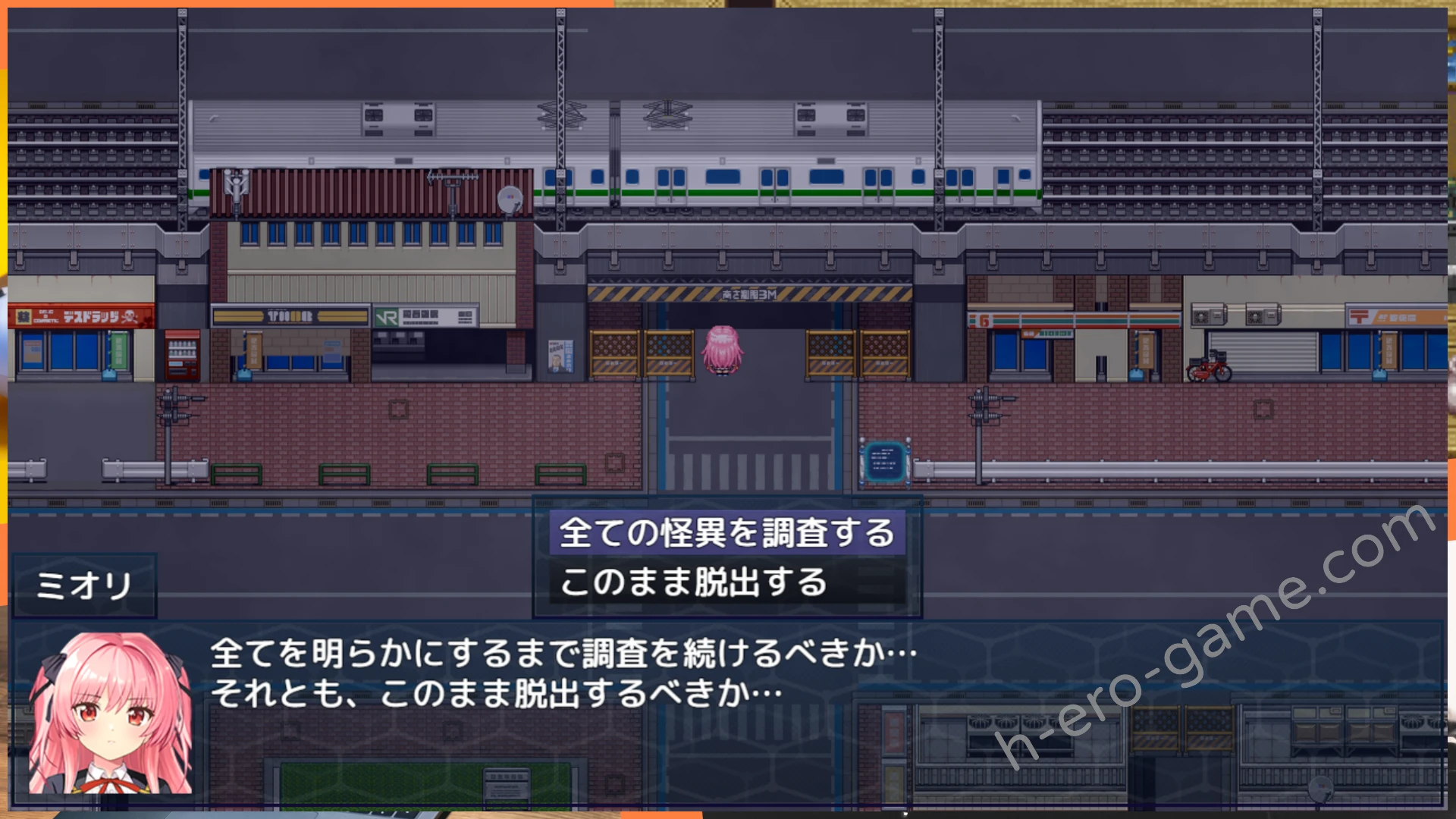 遊戲內共有三十種怪異,若沒有注意到怪異就會觸發H場景。在成功抵達8番街後可以選擇逃脫或是進入「淨化模式」。
