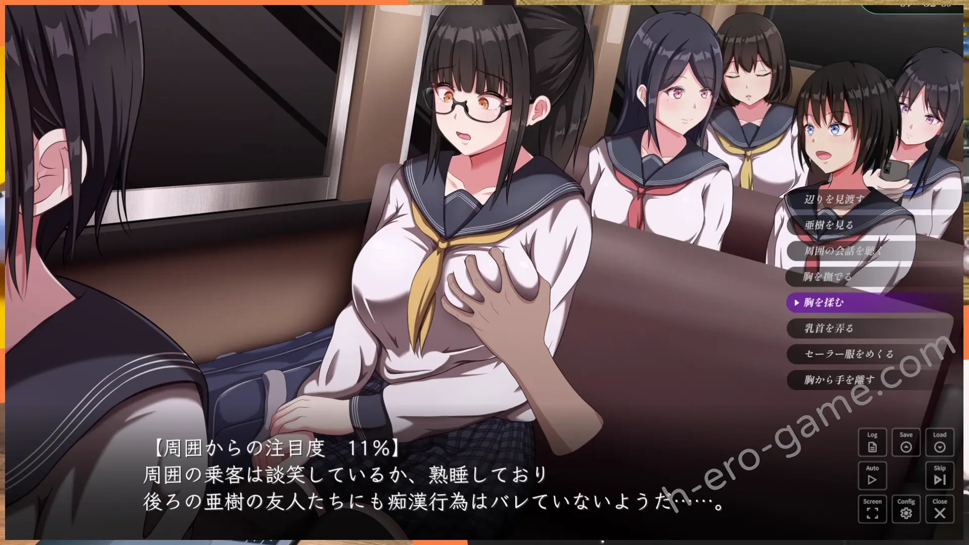本作是一款以巴士癡漢為主題的模擬遊戲,你要在不被其他乘客發現的情況下,對坐在身旁的女學生進行各種癡漢。
