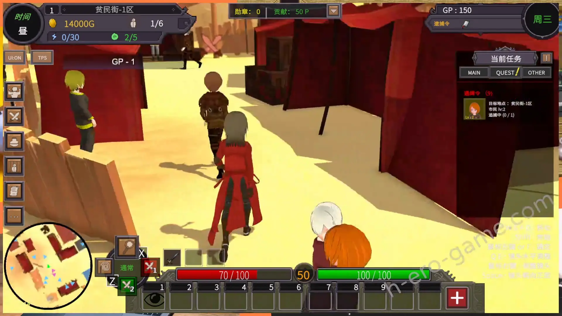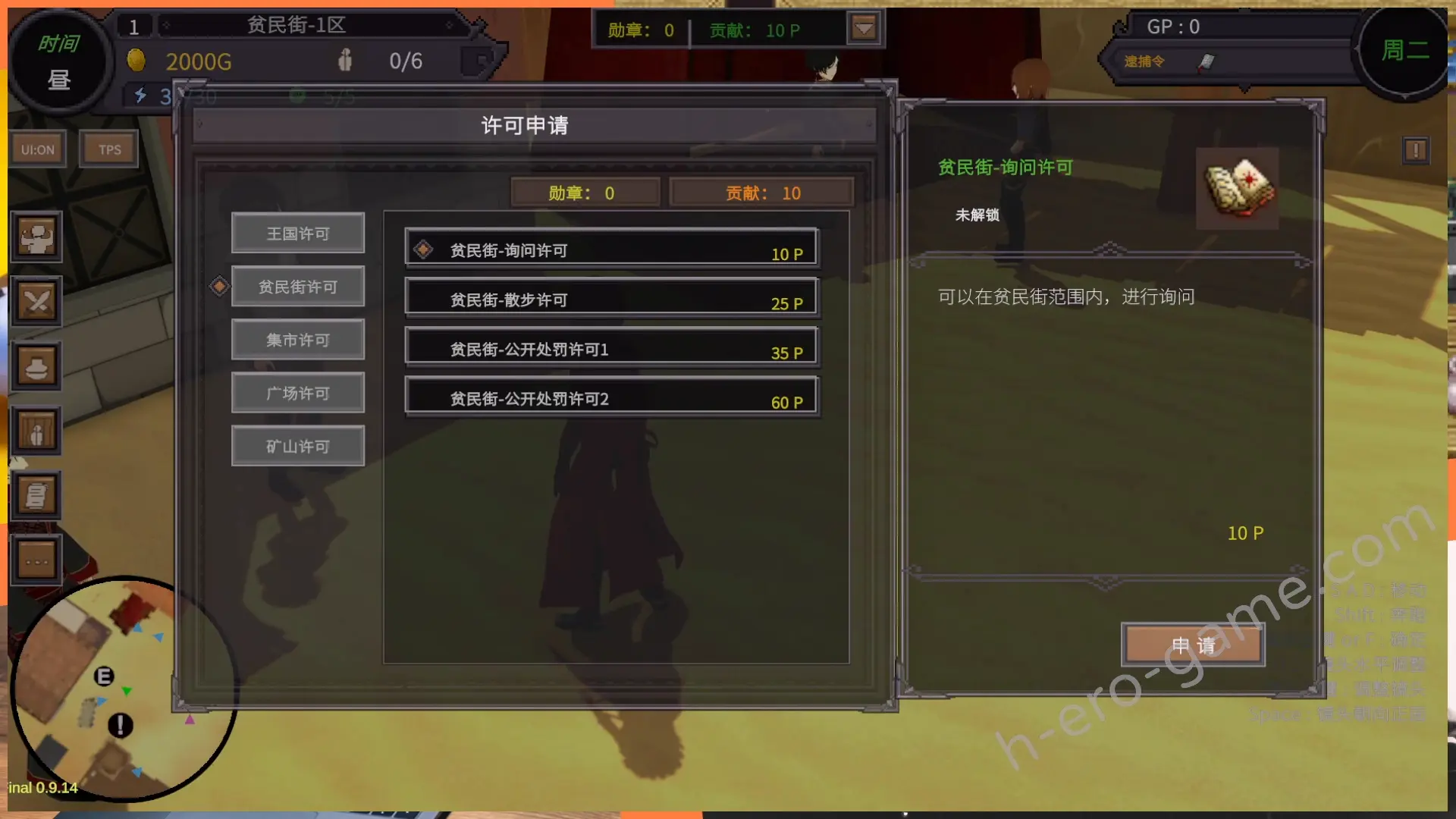 如果是完成通緝令會獲得「貢獻」,這可以用來申請各種動作的許可,例如詢問、散步、公開處罰。不過要注意,各自區域有獨立的貢獻,在貧民街取得的貢獻只能在貧民街用,不能申請集市區、廣場區的許可。
