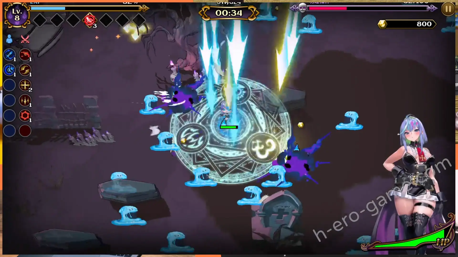 不過寶箱是隨機出現的,沒有看到就是運氣差。而走完兩圈之後敵人也開始增加,沒看到炸彈、磁鐵也別再走了。除了原地站著比較不會死之外,在關卡快結束時收集經驗跟錢也比較方便。