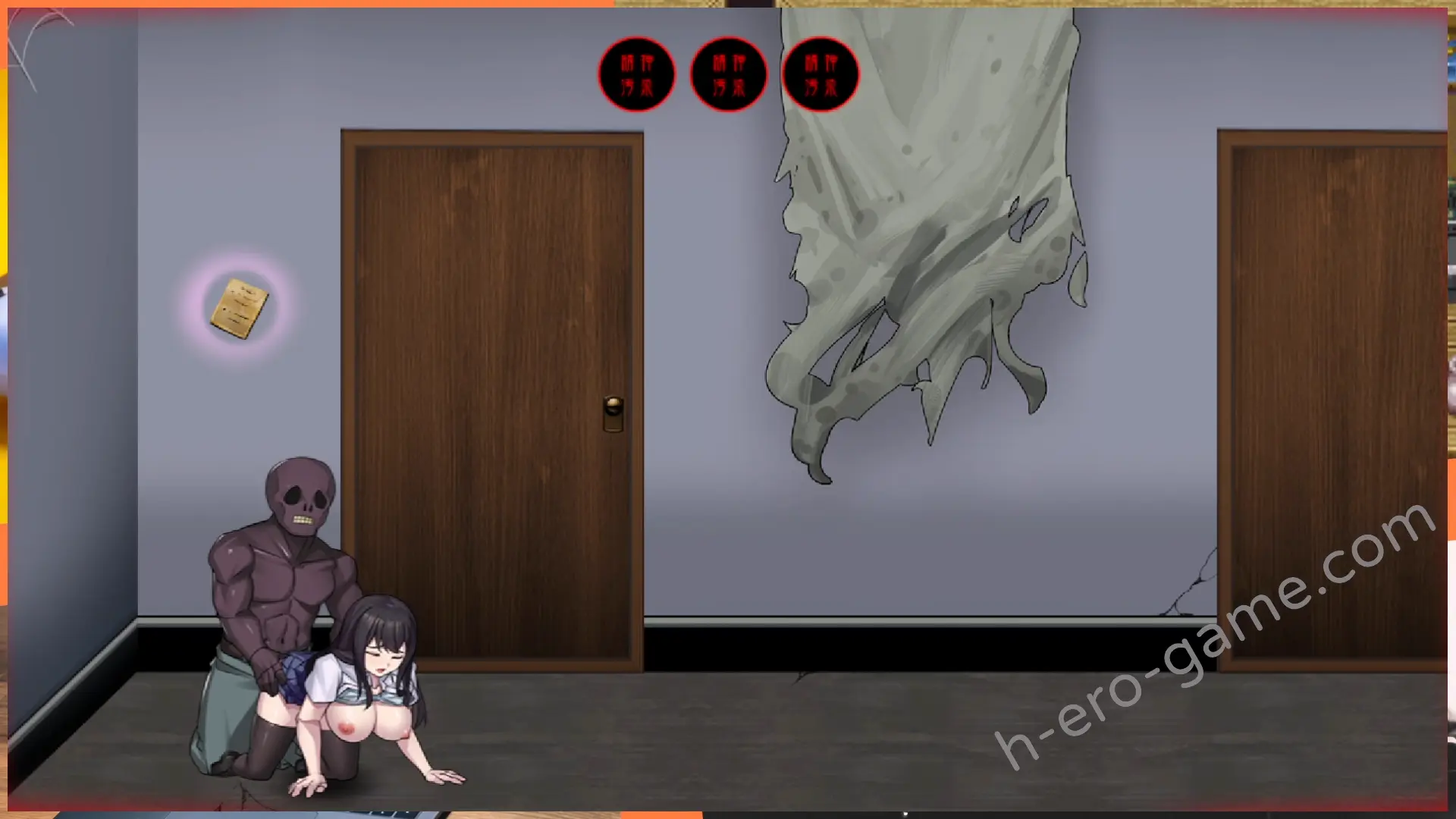 拿著「黄金の卷き鍵」靠近中間的骷髏人會被侵犯。