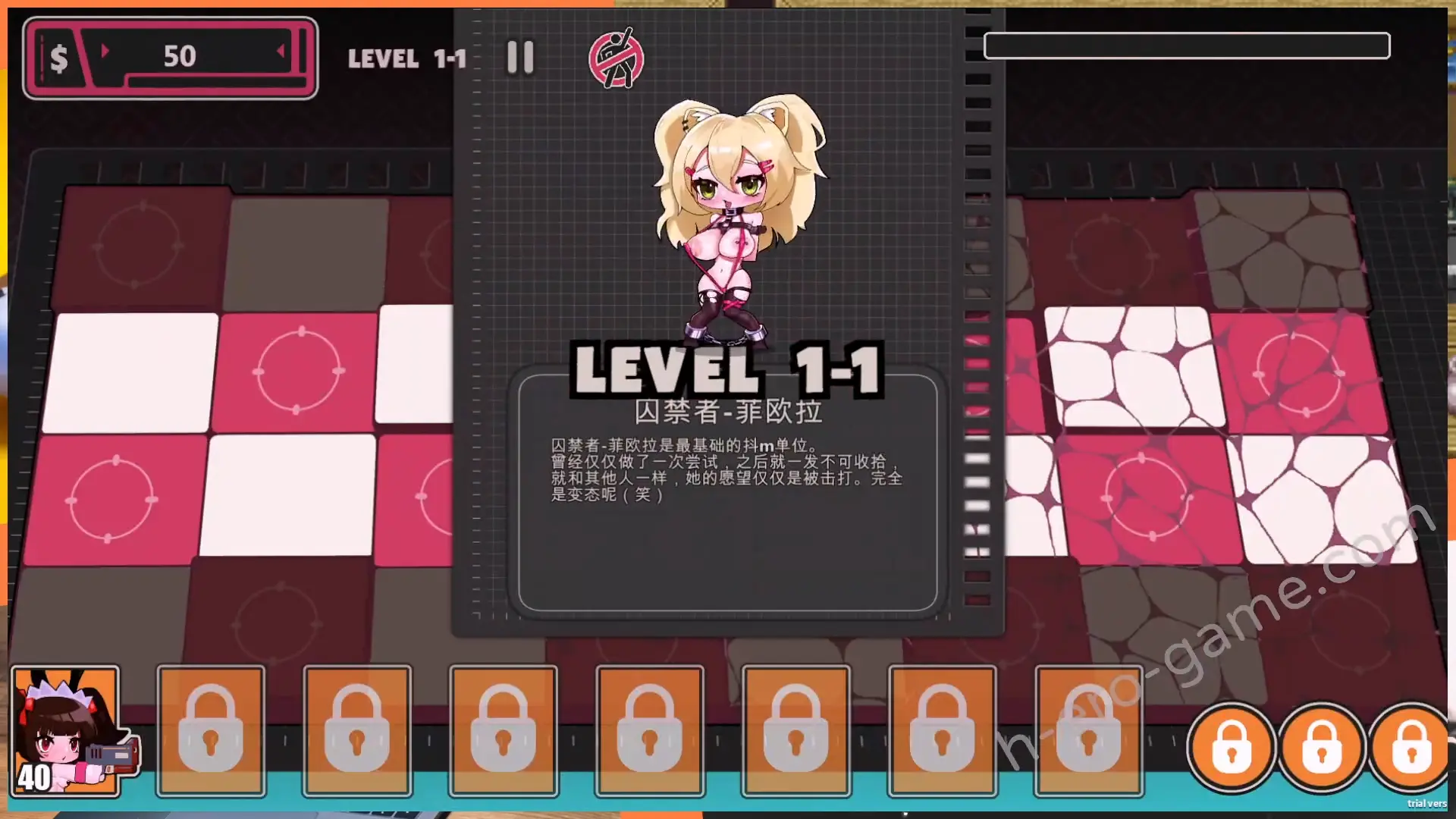 整體遊戲節奏輕快,總計有十六個關卡,戰鬥則是透過消耗錢($),在網格地圖上配置防守單位,阻止敵方單位抵達畫面左側,不過錢只能在戰鬥之中使用。
