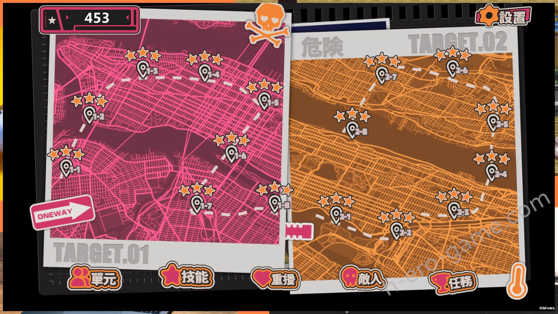而通過關卡之後會獲得「★」,這可以在地圖畫面的「單位」中使用,主要是針對防守單位的「傷害、血量、攻速、範圍」進行強化。