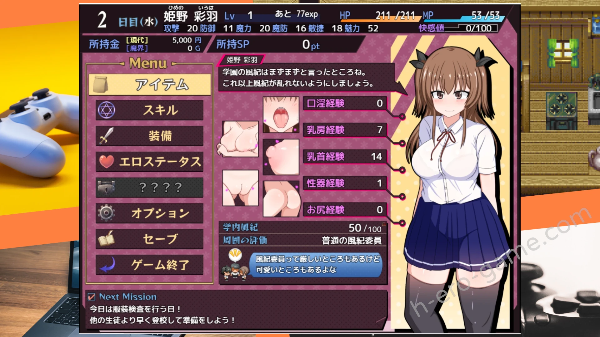 色情度特棒,社團擅長的羞恥描述與表情能大吃三碗飯。女主沉迷色慾的階段處理,從一開始羞恥到後面沉迷性愛還要以風紀委員的身分找各種藉口,風紀委員屬性與悶騷感結合得非常好,配上大乳輪與肉感的色情身材完美體現風紀委員就是最敗壞風紀的,色情度與人設都完美打中我的好球帶。而遊戲裡的小遊戲配上色情事件也很有氛圍,還有些跟色情事件沒掛勾的小遊戲,例如流水線打工配上宇宙貓梗也是趣味性十足。