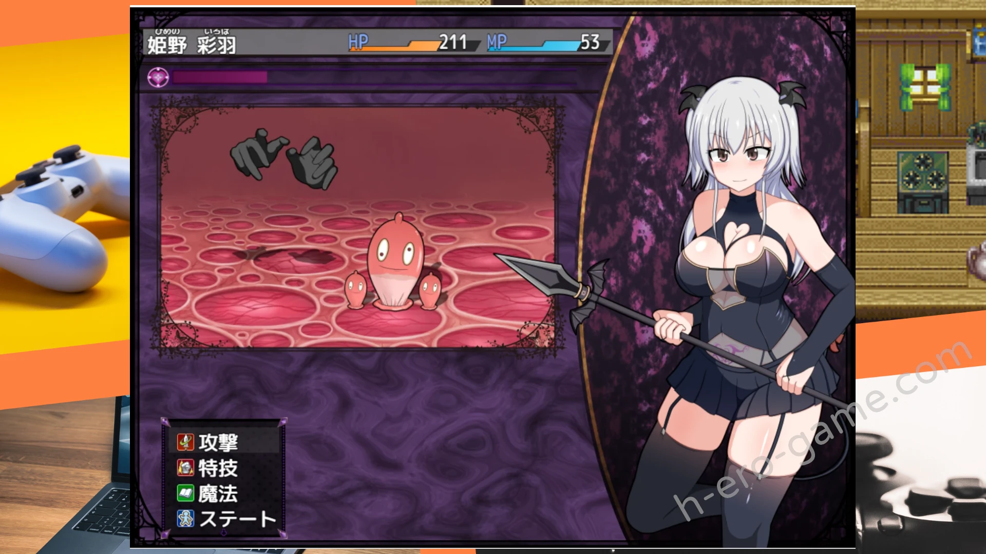 為了完成契約,「彩羽」不得不開始與其他同樣跟別的魔物簽訂契約的人們戰鬥並取得勝利。但是,若想發揮淫魔的力量的話,就得要做色情的事情才行。