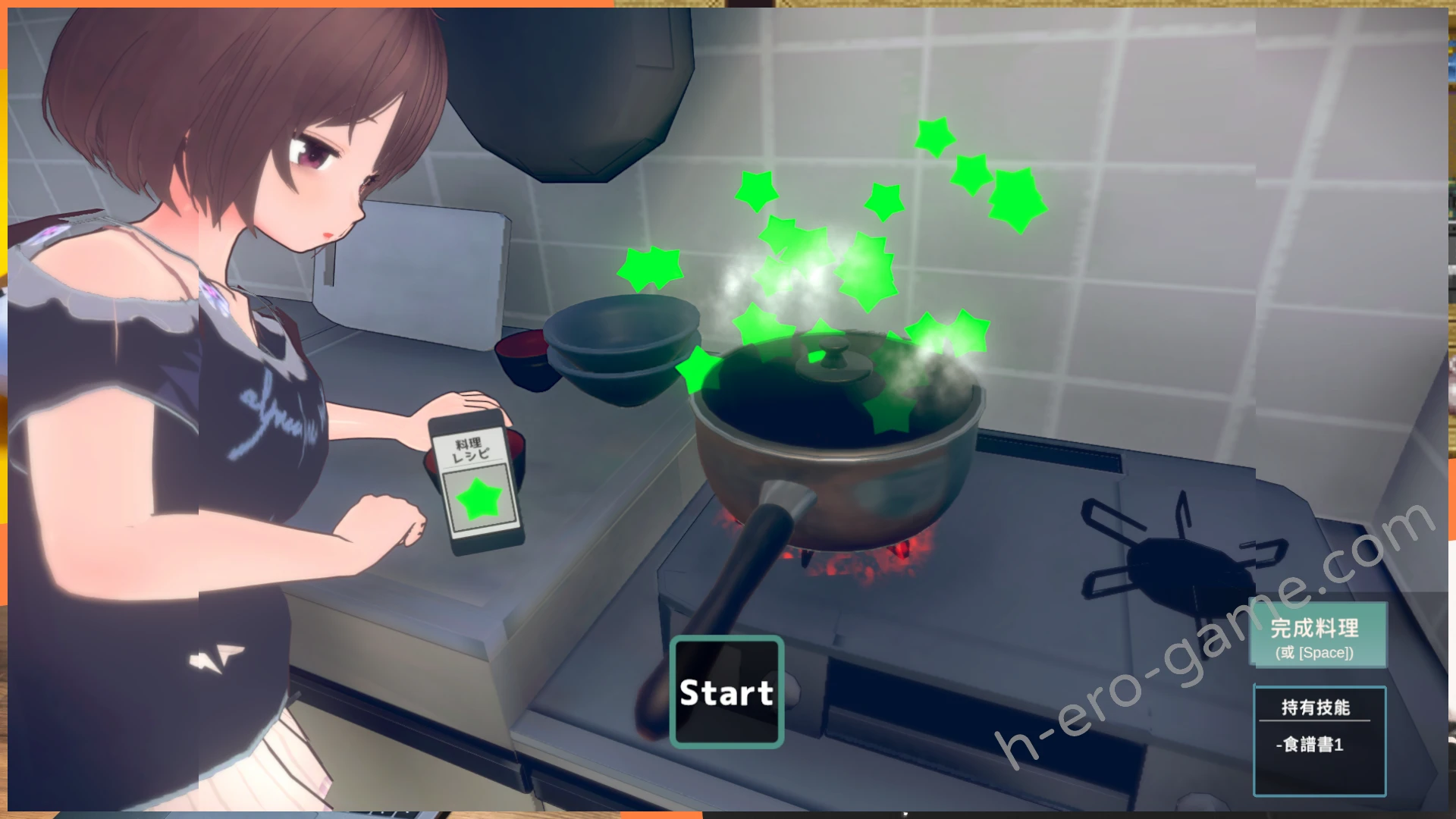 例如先在閒聊中知道女兒想要吃什麼,確認女兒現在的飽腹度少於50,然後就可以準備烹飪料理。