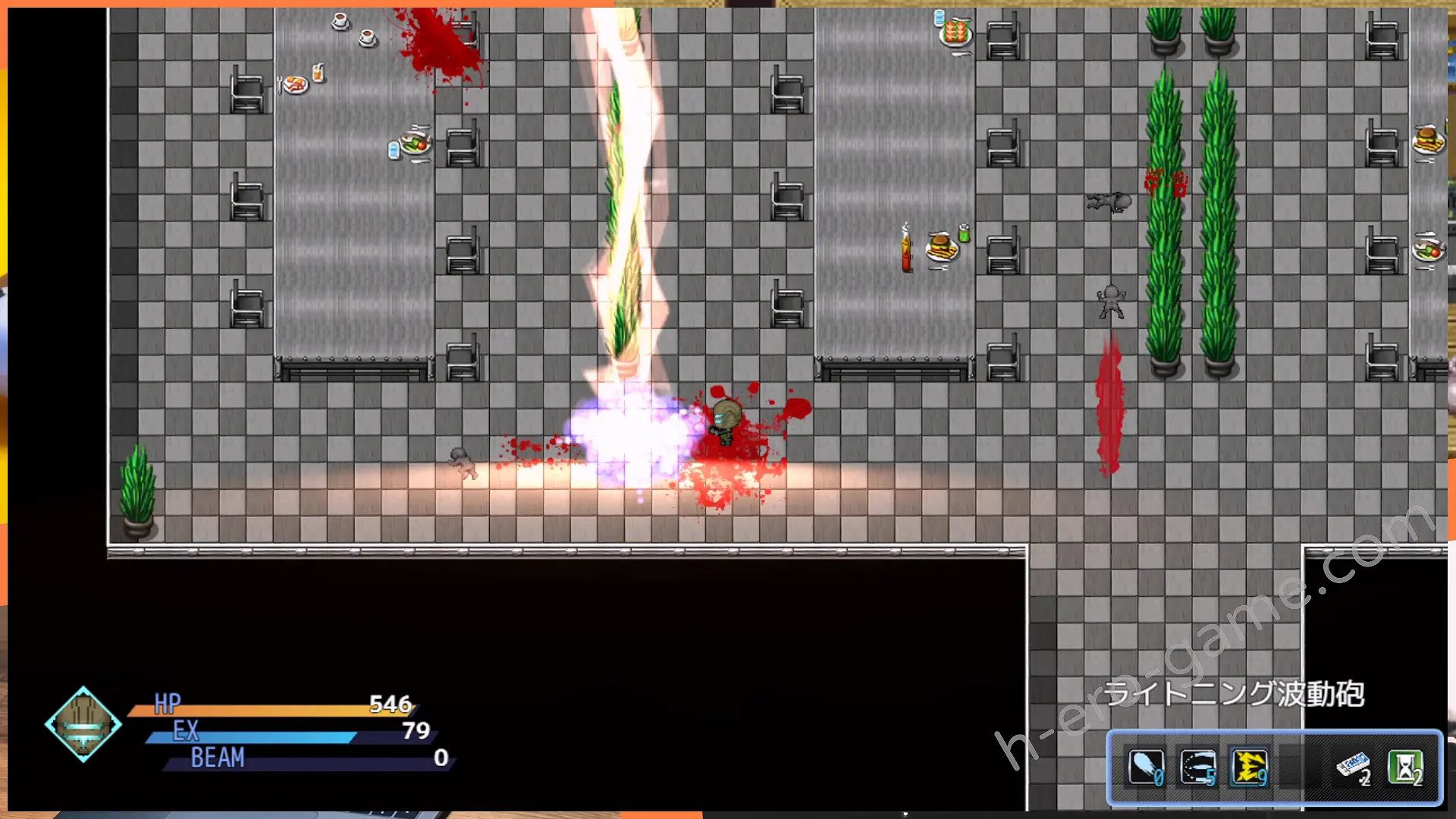 同時還要在關卡中尋找史萊姆碎片,這也與強化武器相關。在設定上,要幫史萊姆找回他的記憶碎片才能想到更多技術來改造「試作波動砲R型」。