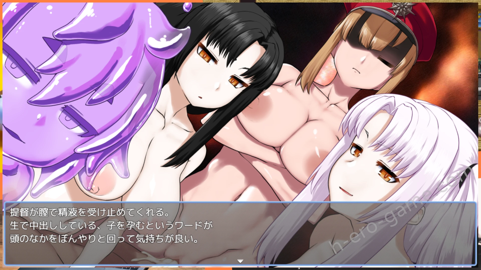 工口部分的演出是CG加文字的ADV式,所有H事件都是與一路攻略過來的女頭目。多P不算的話,每個女角有兩個常規的H事件,並且有敗北、色誘、性慾處理三種情境差分。不過實際上就算是性慾處理的部分,也都有點逆雷普的味道。