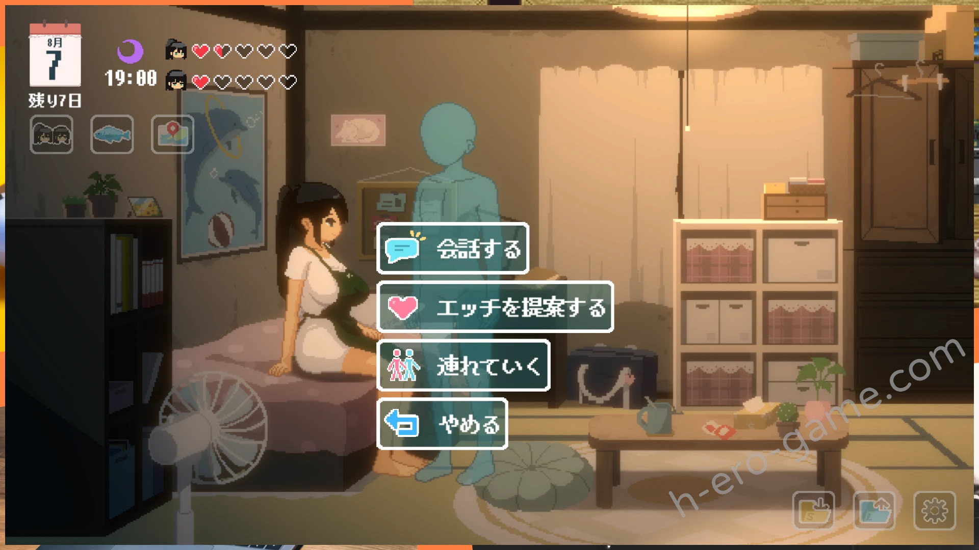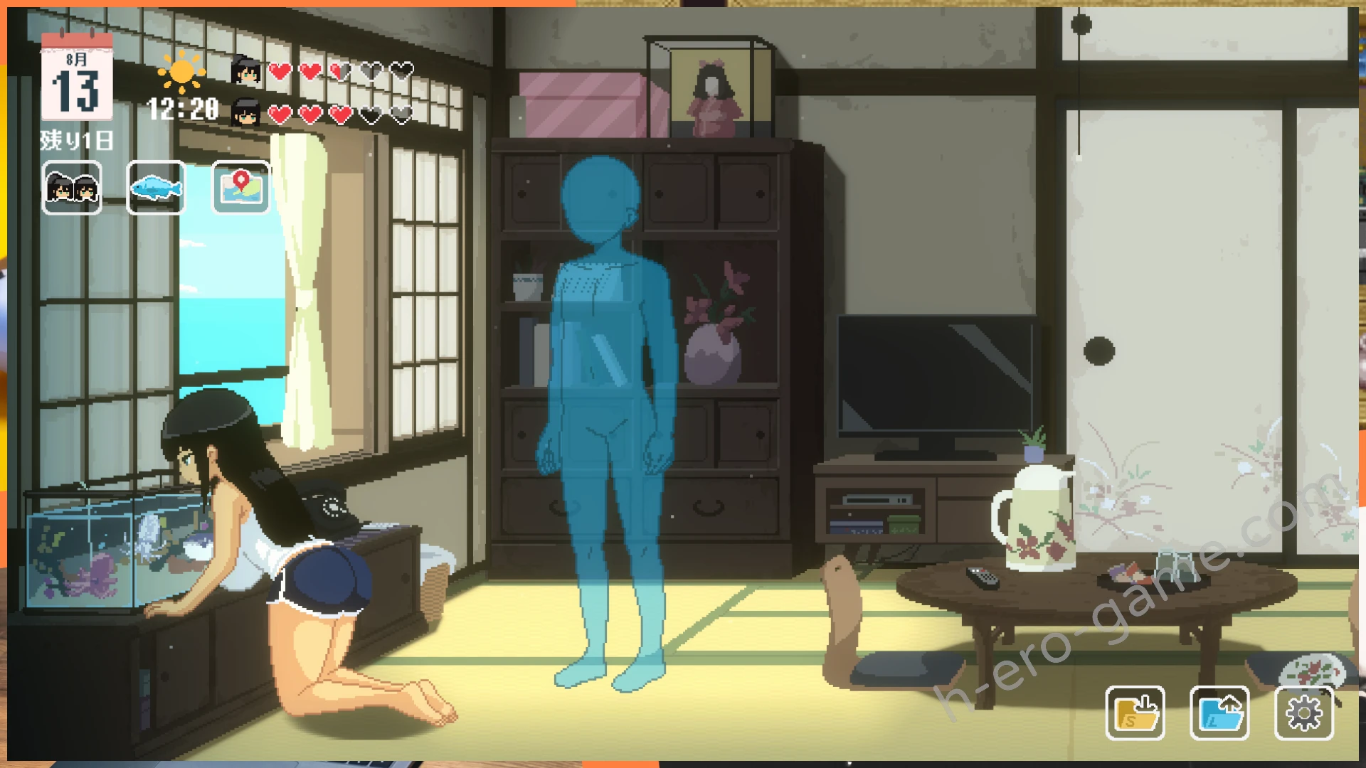 整體流程就是在民宿與島上各處行動→與姊妹互動→觸發事件與H場景,雖說有好感度的設定,但H場景是否解鎖,其實主要是時間到了就觸發任務,與兩人的好感度高低無關。
