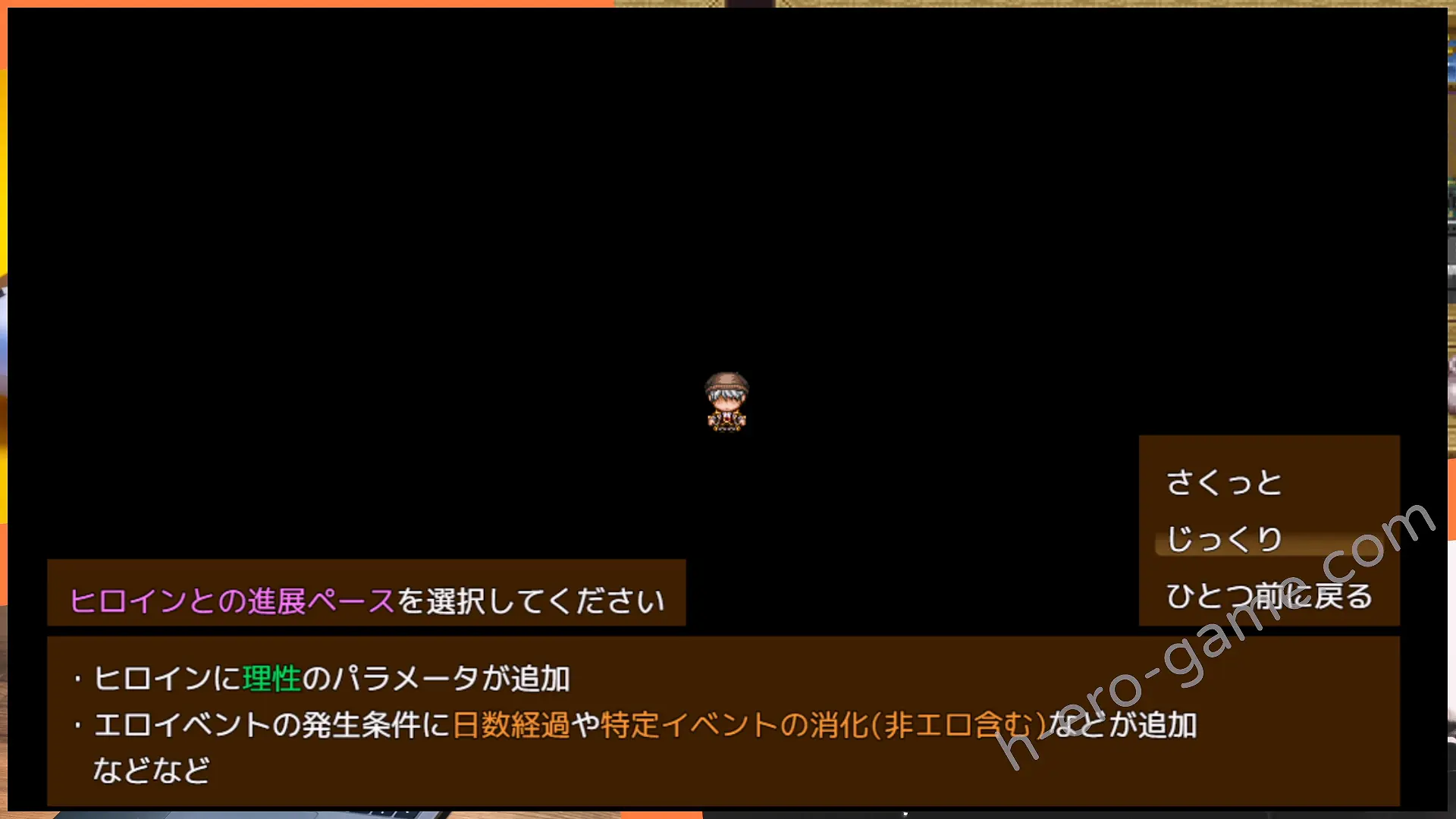 基本上在序章結束後就算開始正式遊戲,也解鎖各種數值。最主要的是「發情度」與「住民不信度」,