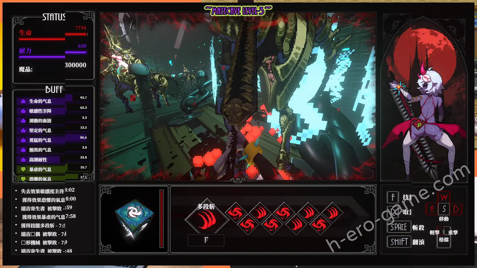 地城本身沒有複雜的機關,說是迷宮其實也沒有什麼路線問題,就是一個房間一個房間的打過去,重點是專心戰鬥、收集魔晶。然後在據點把力量、敏捷、體力加高,再回去用壓倒性的數值輾壓,其實是會有些無雙的割草感。