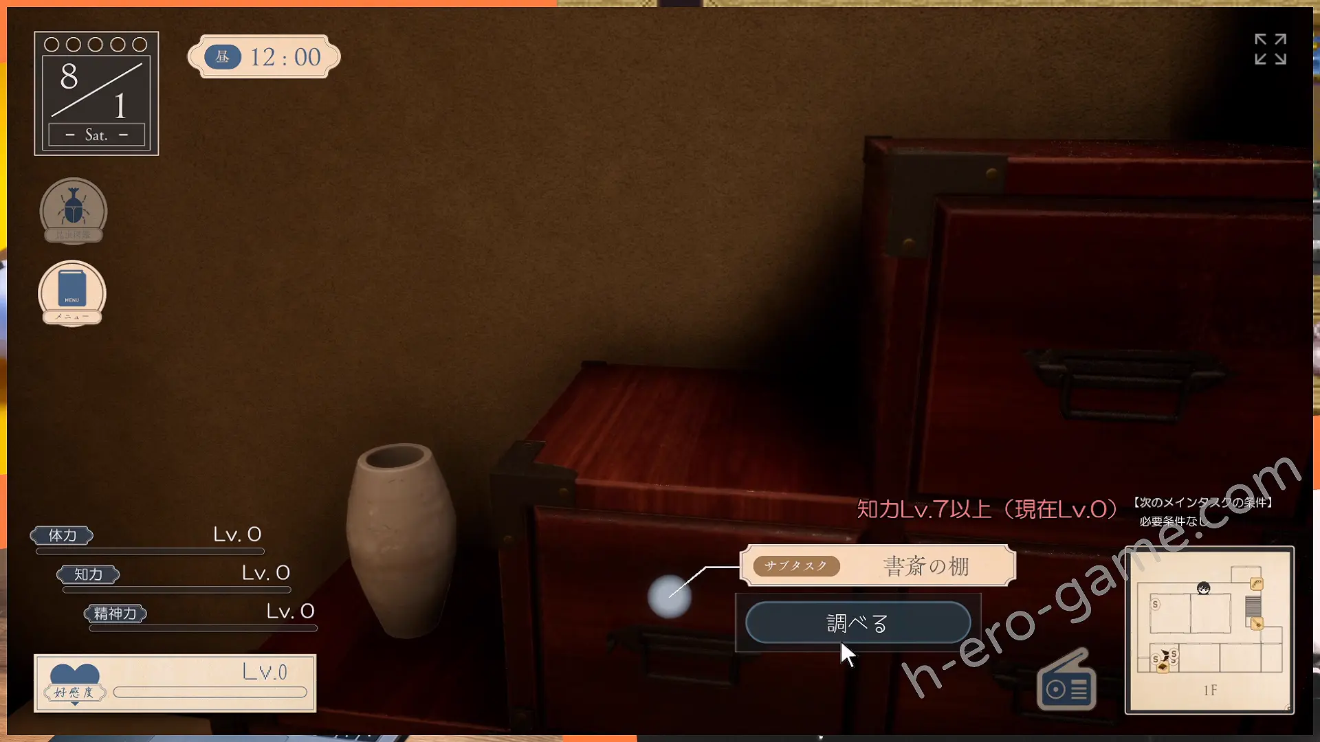 好感度的部分會在完成主線任務、一起訓練能力、與姊姊對話與H來提升。同時也跟能力一樣是觸發任務的條件。