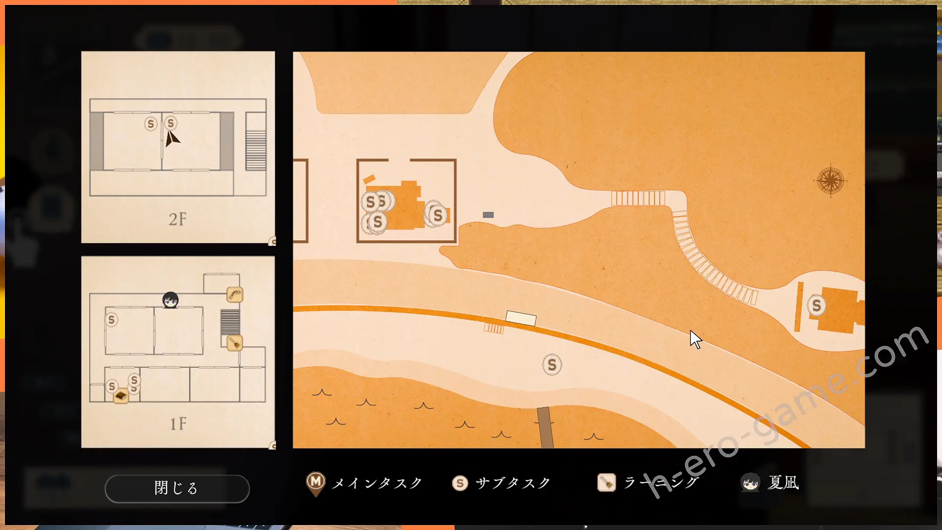 可以透過畫面右下的地圖確認任務地點與姊姊的所在位置,其中M圖示代表主線任務,S圖示代表支線任務,主線與支線皆有能力值需求才能進行。