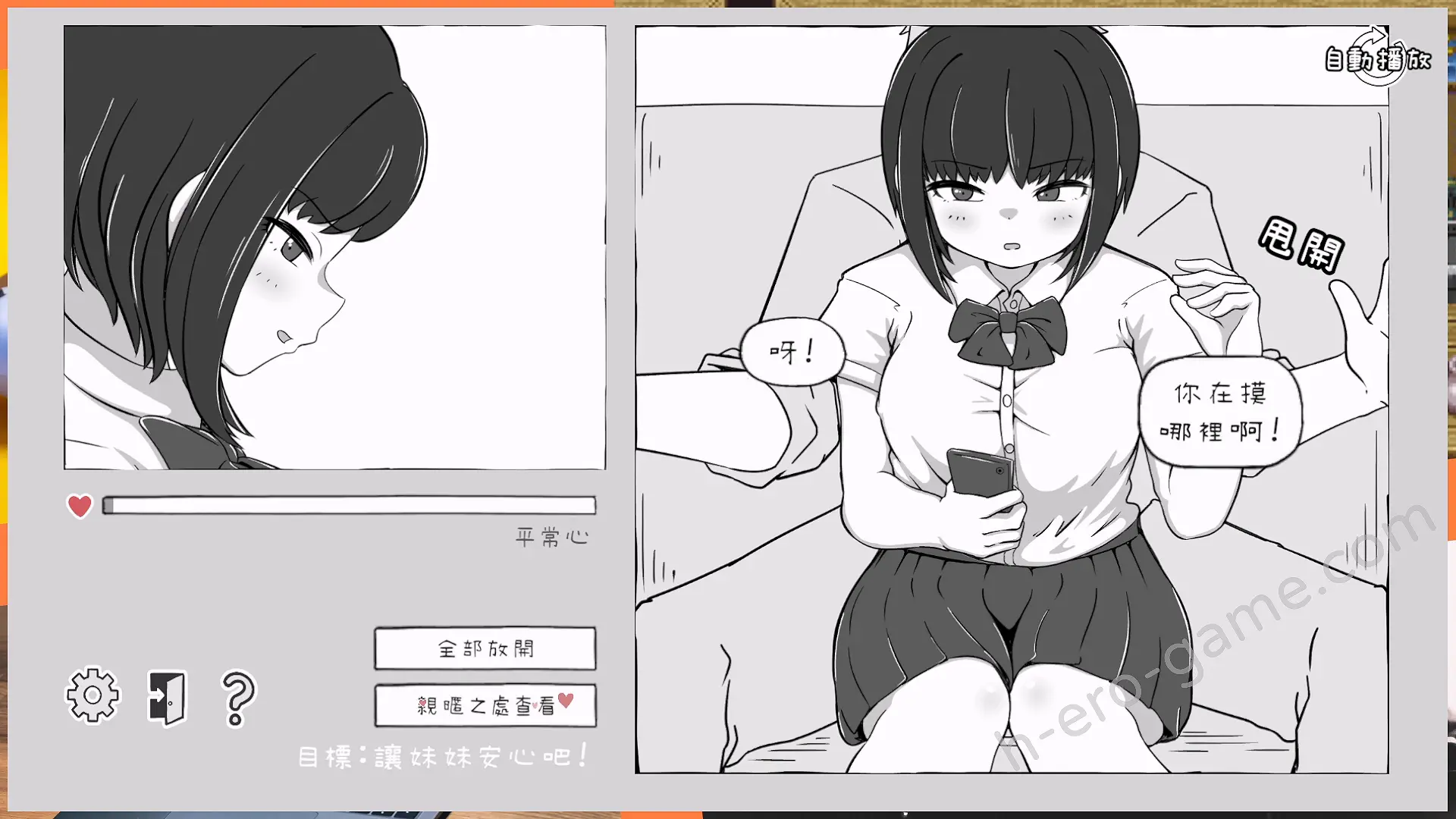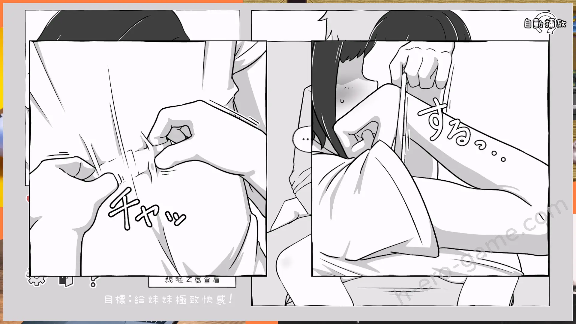 遊戲進行需要透過點擊部位或選擇選項開始觸摸或互動,在初期妹妹仍保有理性,因此會明確拒絕部分的觸摸動作。