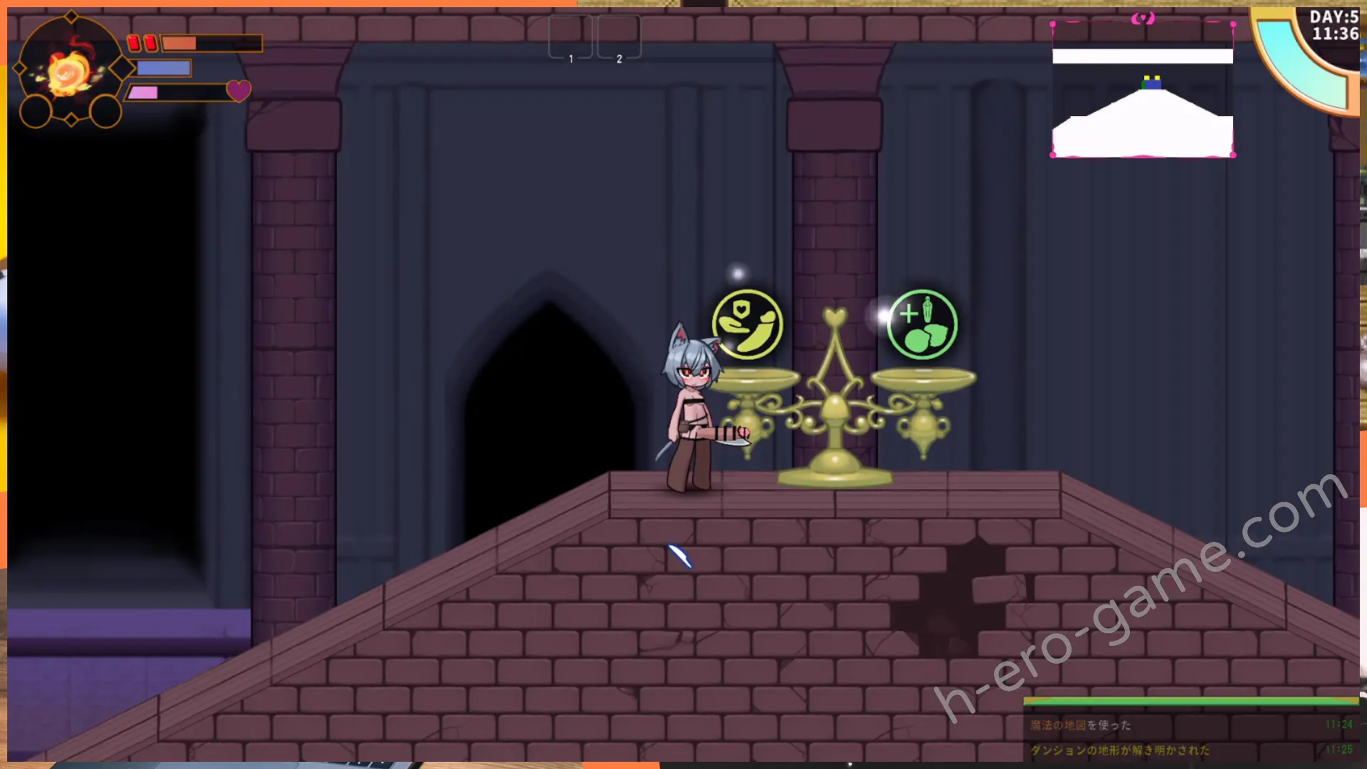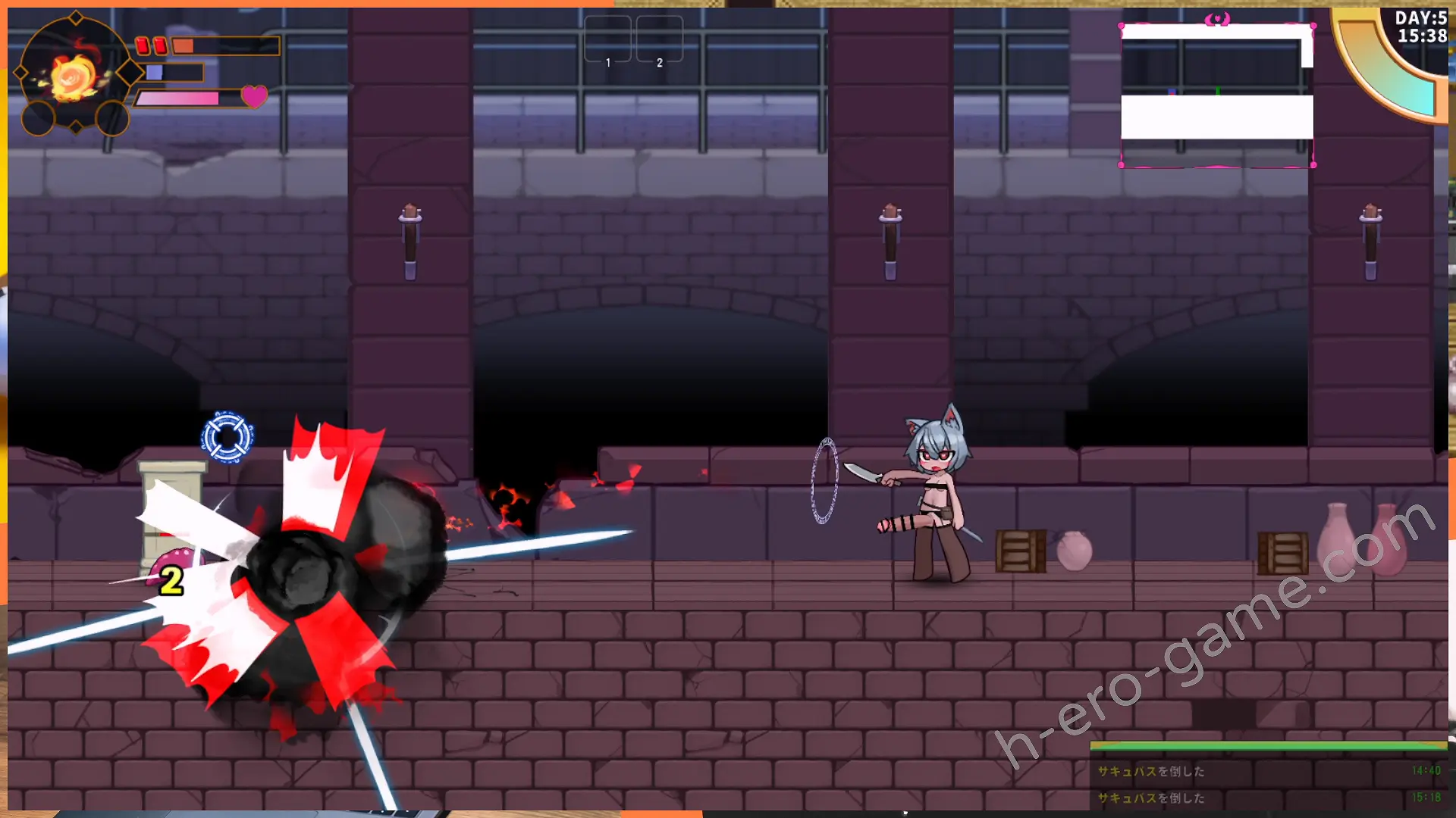 如果在地城中被魔物娘打倒,則會無謂的浪費射精次數。沒有在時限前離開地城的話,就會在地城中被榨乾直接跳到隔天。