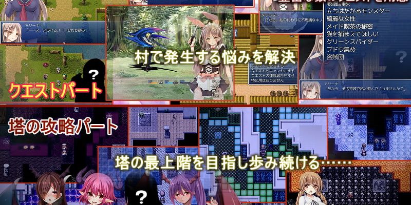 工口部分是女主跟女僕們的百合為主,被女孩子色誘,打倒塔裡的魅魔後硬上,被打倒之後也會被硬上。