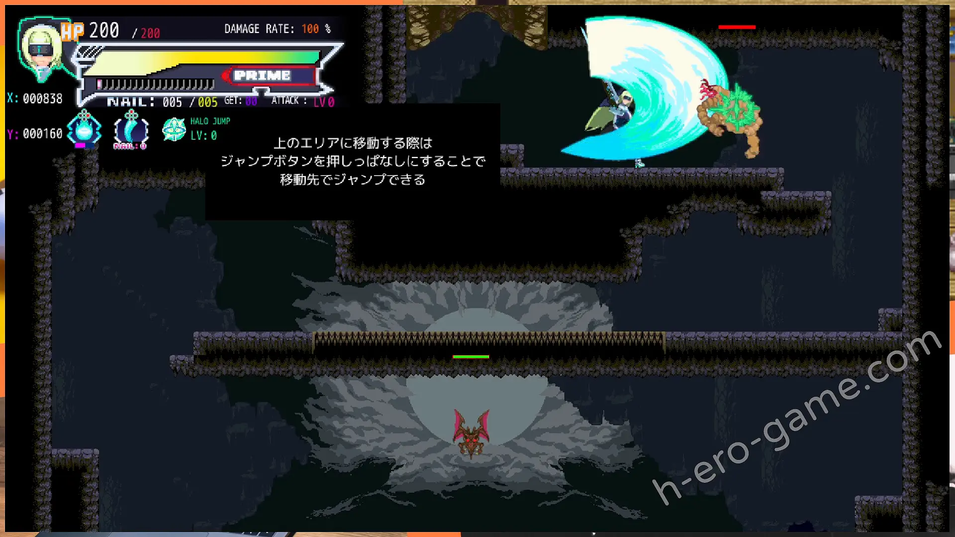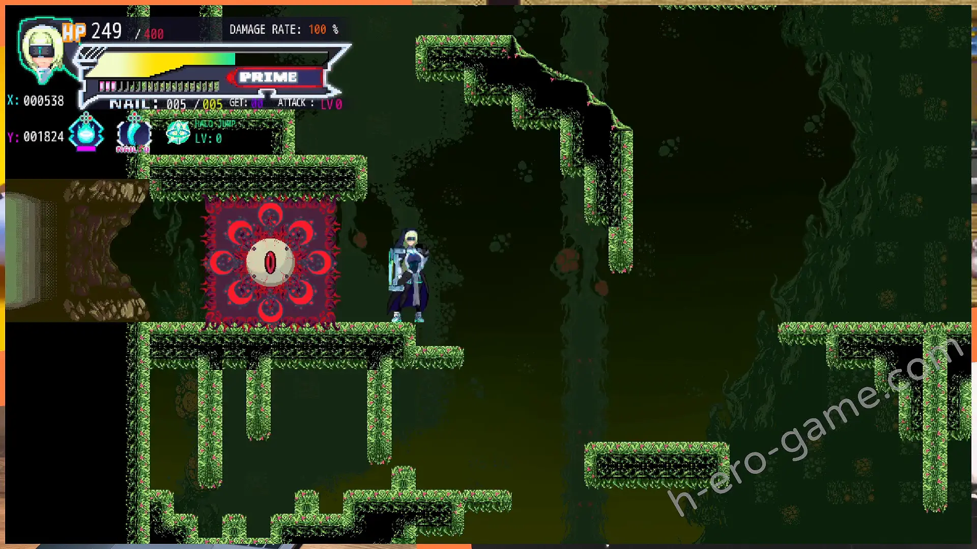 本作是橫向卷軸的2D動作遊戲,整體是類銀行戰士惡魔城的結構,需要透過探索取得技能,才能逐步突破地形限制、打通原本被封鎖的路線。