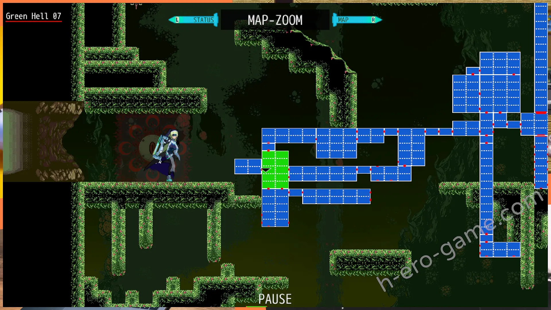 剛才提到關卡是類銀行戰士惡魔城的結構,主要就是在地圖上會有許多惡魔方塊等阻擋路線,需要探索取得的新射擊模式或副手武器來破壞對應的惡魔方塊。