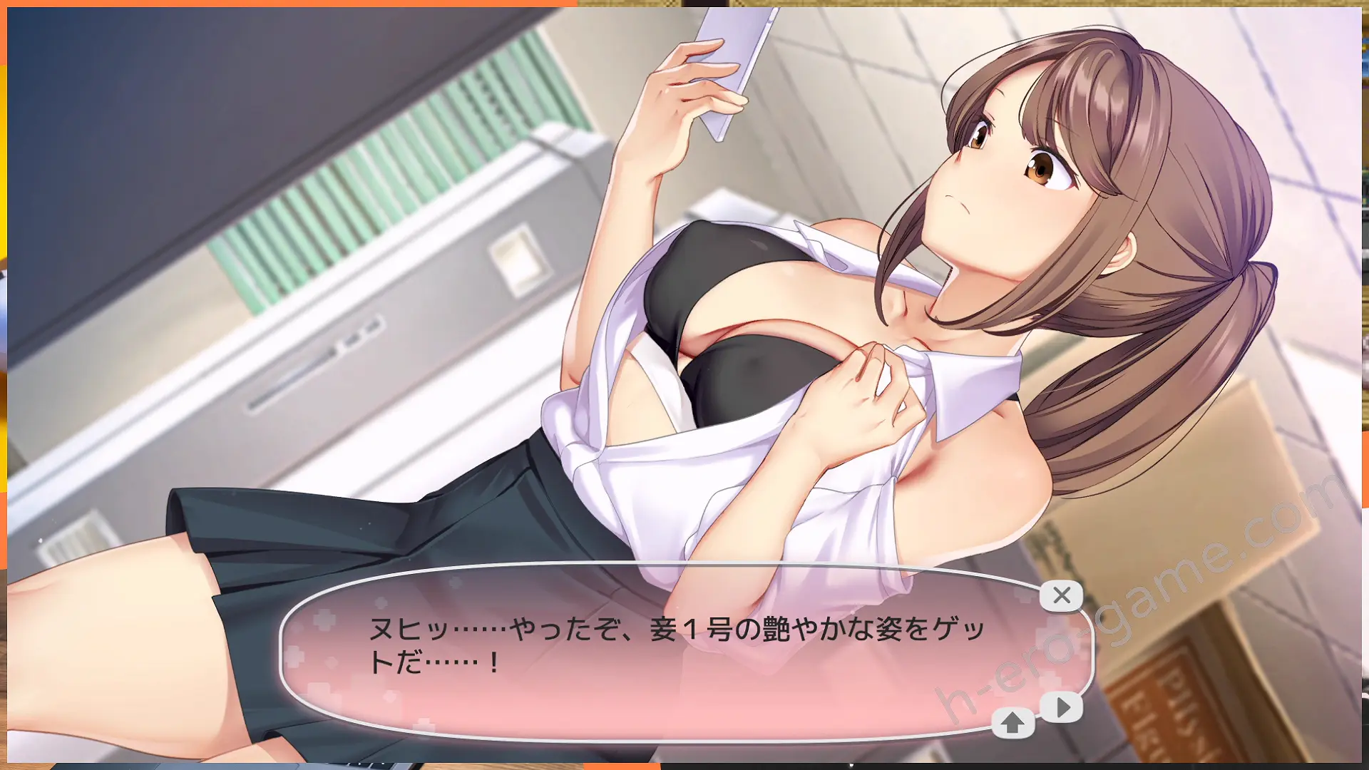 核心其實很單純是要以探索、竊聽、監視等行動累積脅迫點數,然後將女主叫進房間裡H,脅迫點數累積的越多就能解鎖H事件。