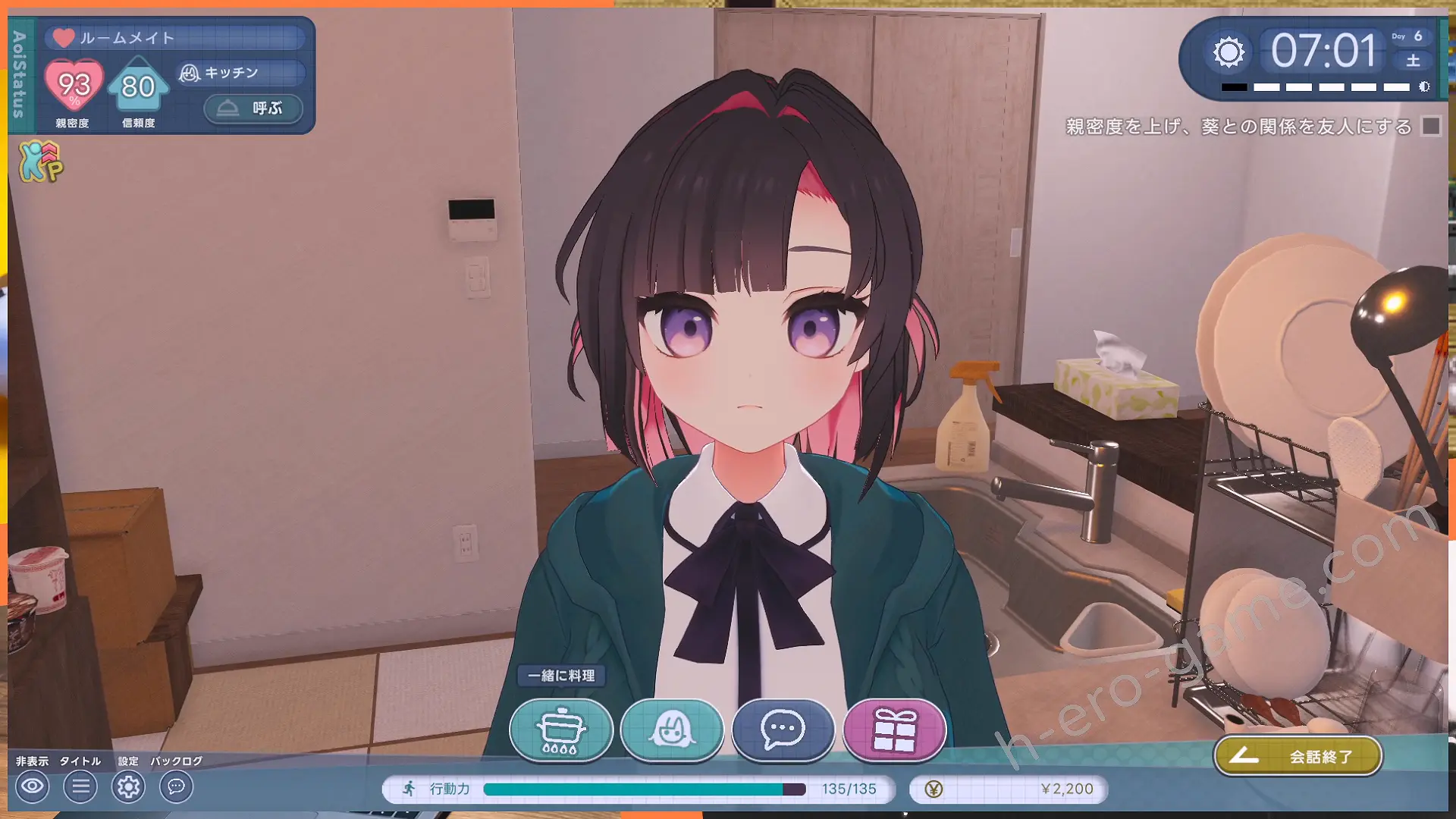 另外在H中的指令操作與移動也不直覺,如果後續能再把操作流暢度修整得更順,並把H段落裡的互動方式補得更豐富一些,整體完成度還會更高。因為本作的核心方向其實是成立的:同居生活感、角色魅力、日常互動的累積,這些都做得不差,真正不足的地方反而是在H方面的豐富程度跟操作層面。