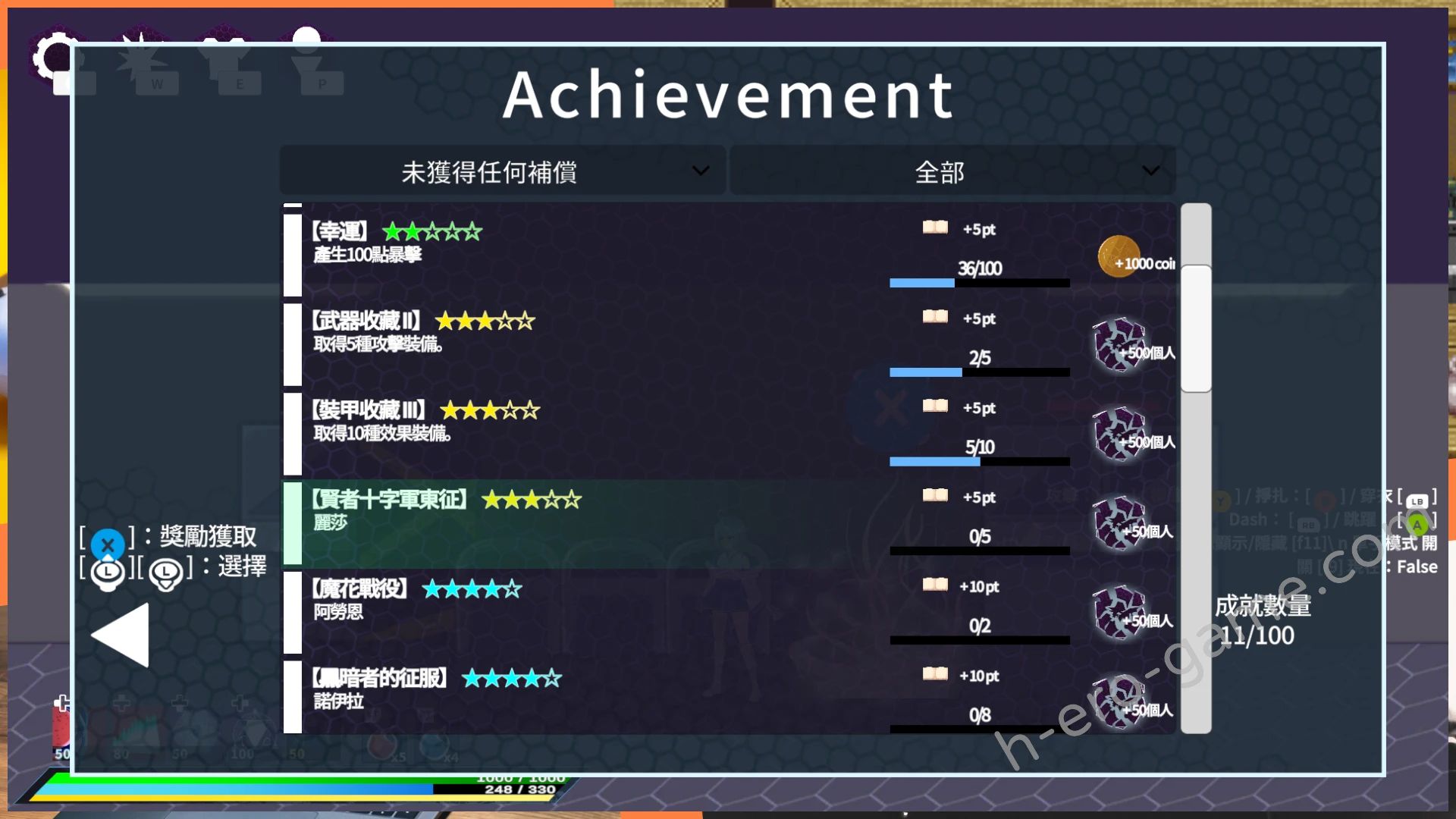 遊戲本身也不差,甚至以2D動作H GAME來說,篇幅算是偏長的。技能、裝備、寶箱、刷裝與支線頭目這些內容,都讓它不只是看過H場景就結束的短流程作品。不過雖說情境感做得很強,畫工本身卻談不上特別精緻,因此在畫面的第一印象上不太好。