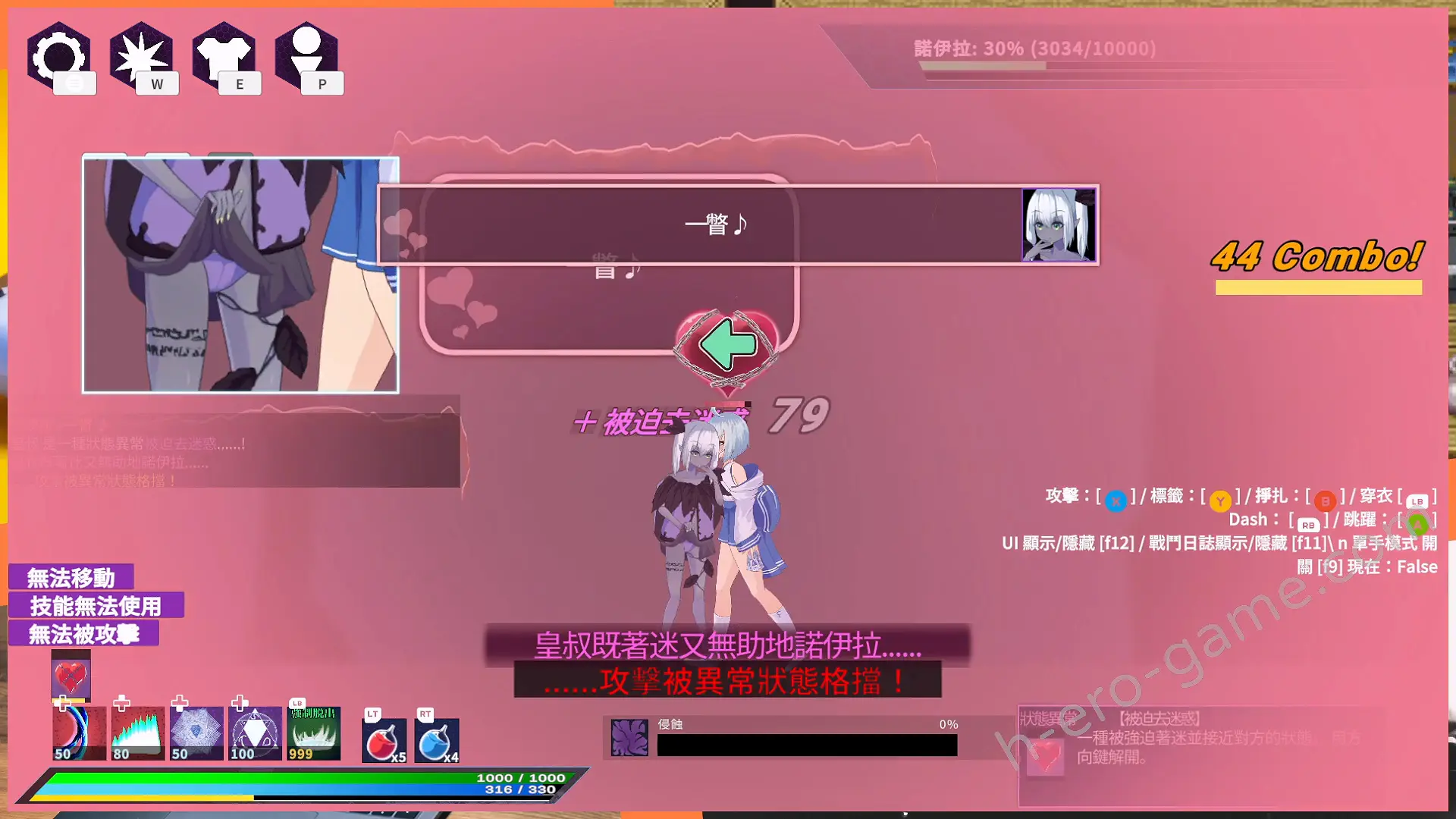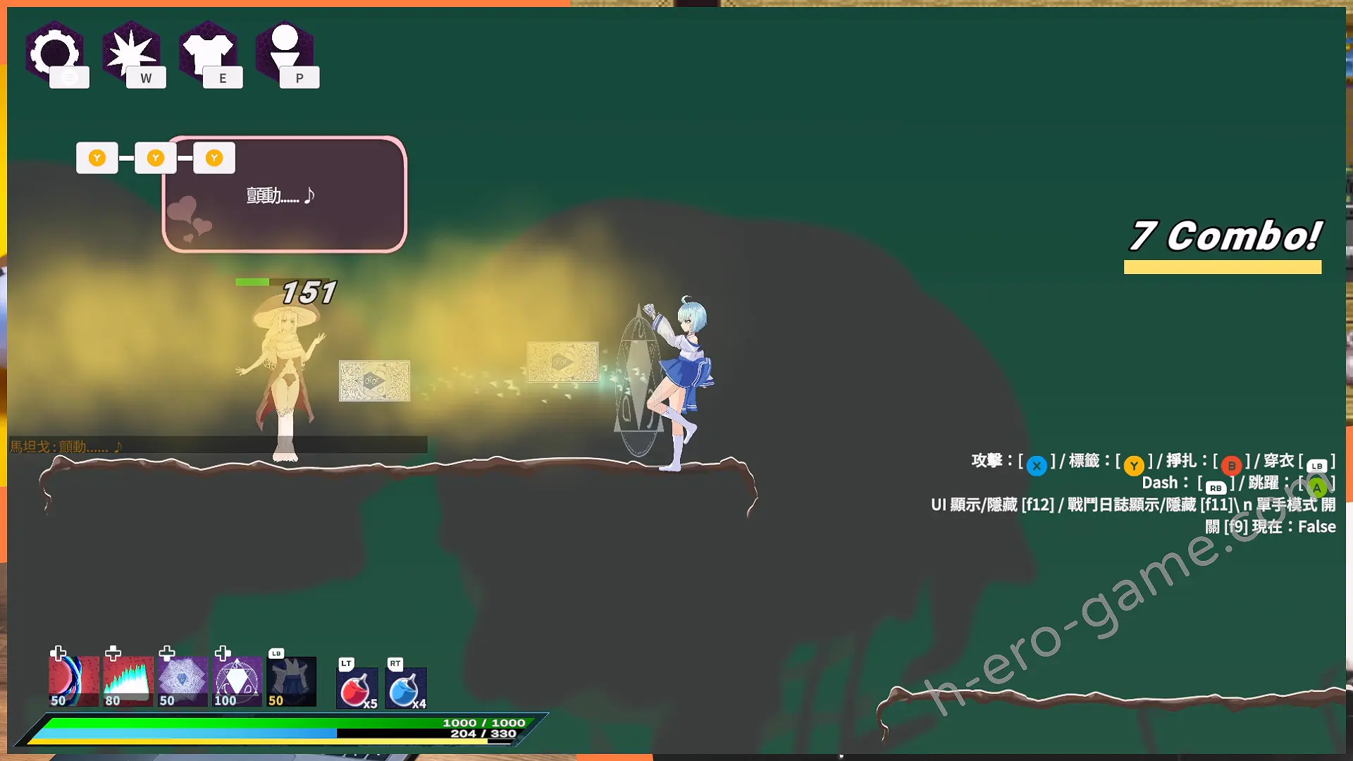 雖然麻煩,但這也正是有意思的地方。過去很多號稱主打狀態異常的作品,實際上只是把拘束換個圖示,遊戲層面的差異並不大。但本作確實把異常狀態落實到了操作上,會讓人清楚感受到身體被干擾、動作受阻的差別。再加上技能種類與連招變化不算少,實際玩起來還是有一點操作難度。不過難易度可以調整,就算失敗了也有加強後復活這類機制,因此整體不至於卡到完全玩不下去。