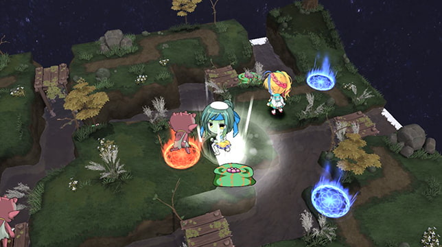 然後是靈脈系統,也就是地圖上的光圈。佔領越多靈脈,每回合可以恢復的靈力就越多,可以更頻繁的使用要消耗靈力的技能,而且在靈脈上待機還可以恢復生命值。被敵人佔據的靈脈就會不斷生出敵對的妖怪,同時敵人也能在他佔領的靈脈上恢復生命。迪波之巢系的戰棋遊戲會讓所有角色在初始狀態下只能使用一到兩次技能,也就是說敵我雙方一開始都會佔領出擊地點周圍的靈脈,之後往中間地區的靈脈推進時遭遇一波戰鬥消耗大量靈力,在透過靈脈修整之後繼續往敵方的腹地推進的據點攻略型。